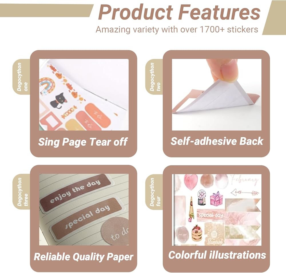 【هدايا رائعة】تتميز ملصقات المجلات هذه بأنها ملحقات مخططة ممتازة لديكورات DIY - كما أنها تمثل هدايا رائعة لعشاق الحرف اليدوية والأصدقاء والعائلة على حد سواء. استخدمها لتحديد التواريخ المهمة، أو أضف لمسة من المرح إلى صفحات التخطيط الخاصة بك. سواء كان ذلك للتنظيم أو تقديم الهدايا، فإن ملصقات التخطيط الصغيرة هذه للبالغين، وملصقات التقويم للأطفال، وملصقات التخطيط للنساء وملصقات التخطيط المدرسية توفر طريقة مثالية للتعبير عن نفسك وترك انطباع دائم.