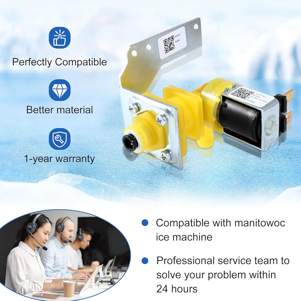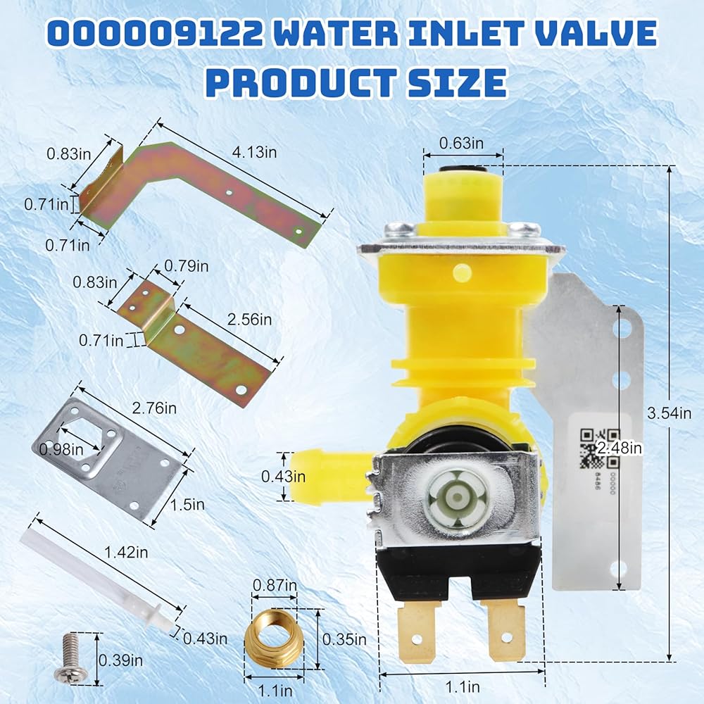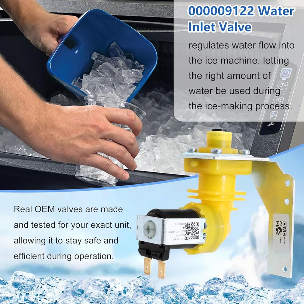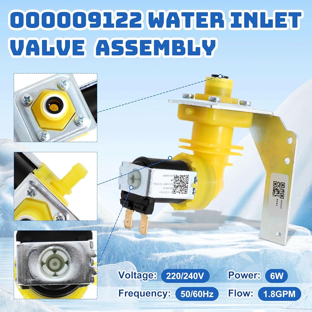 مواصفات الطاقة: 000009122 000008484 يعمل صمام المياه لآلة صنع الثلج على 220/240 فولت 50/60 هرتز 6 وات ويبلغ معدل تدفقه 1.8 جالون في الدقيقة (GPM). تم تصنيع واختبار صمام مدخل المياه 000009122 خصيصًا لوحدتك الخاصة، مما يضمن السلامة والكفاءة أثناء التشغيل.