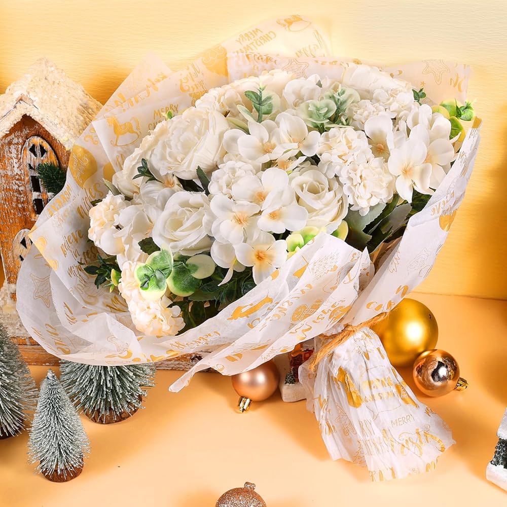 • 🎅🌲🎅【Various Applications】- Our gold Christmas - themed letters tissue paper can be used for decoupage, gift packaging, flower wrapping on wedding, birthday, bridal shower, anniversary, home gathering, women's tea party and prom. Also be used for collage, decoupage crafts and scrapbooking in daily life to decorate lampshades, closets, dresser, doing some ornaments at Christmas as well