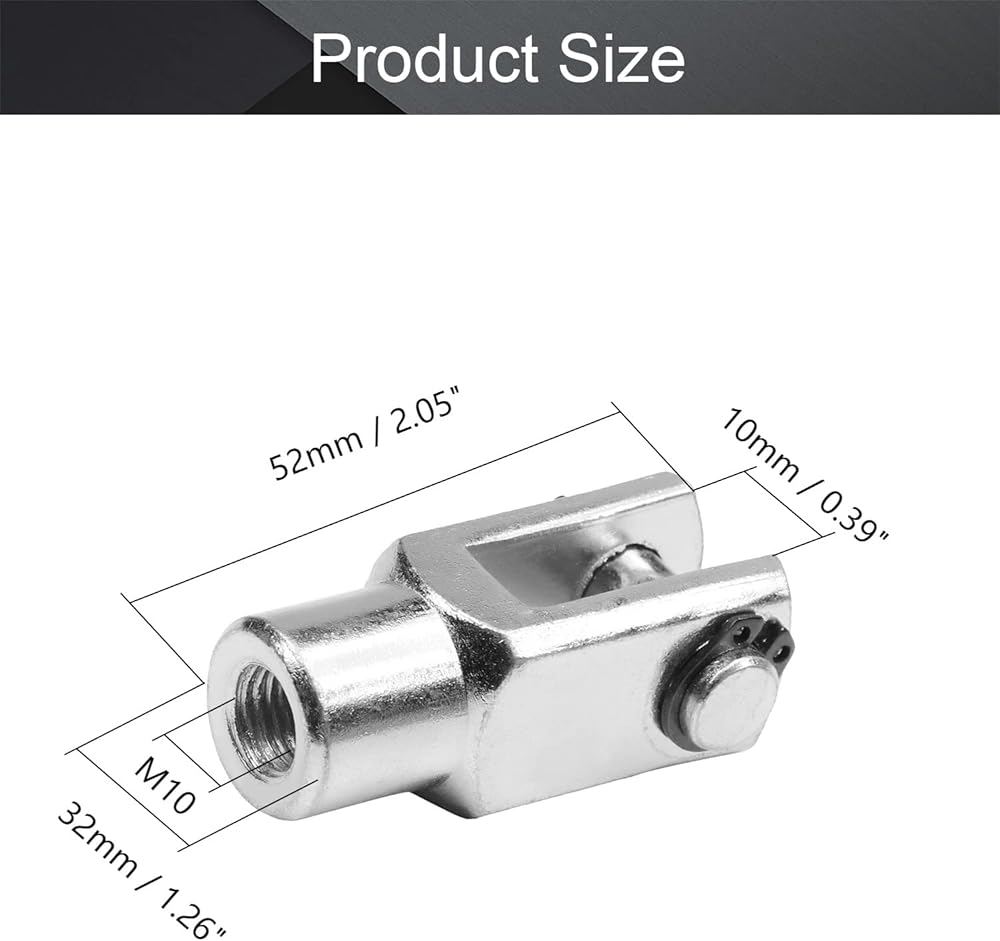 Aicosineg اسطوانة الهواء Clevis Y المشتركة M10x1.25in أنثى الموضوع Y موصل 2.04in طول اسطوانة الهواء قضيب Clevis نهاية هوائي اسطوانة الهواء موصل المناسب لصناعة النسيج الكيميائية الإلكترونية