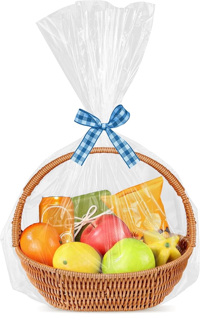 【استخدامات متعددة】يمكنك استخدام أكياس السلة الشفافة هذه لتعبئة السلال وإطارات الصور وزجاجة النبيذ والفواكه وصناديق الهدايا وهدايا عيد الميلاد والوجبات الخفيفة والحرف اليدوية ومستحضرات التجميل وتخزين الملابس والفراش والضروريات اليومية وما إلى ذلك.