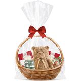 【اجعل هداياك أنيقة】فقط ضع سلتك أو منتجك في أكياس هدايا شفافة ثم اربط قوسًا وشريطًا كبيرًا لجعل هداياك تبدو أكثر جمالاً ورائعة، والجودة الواضحة الكريستالية تحافظ على سلعتك لافتة للنظر.