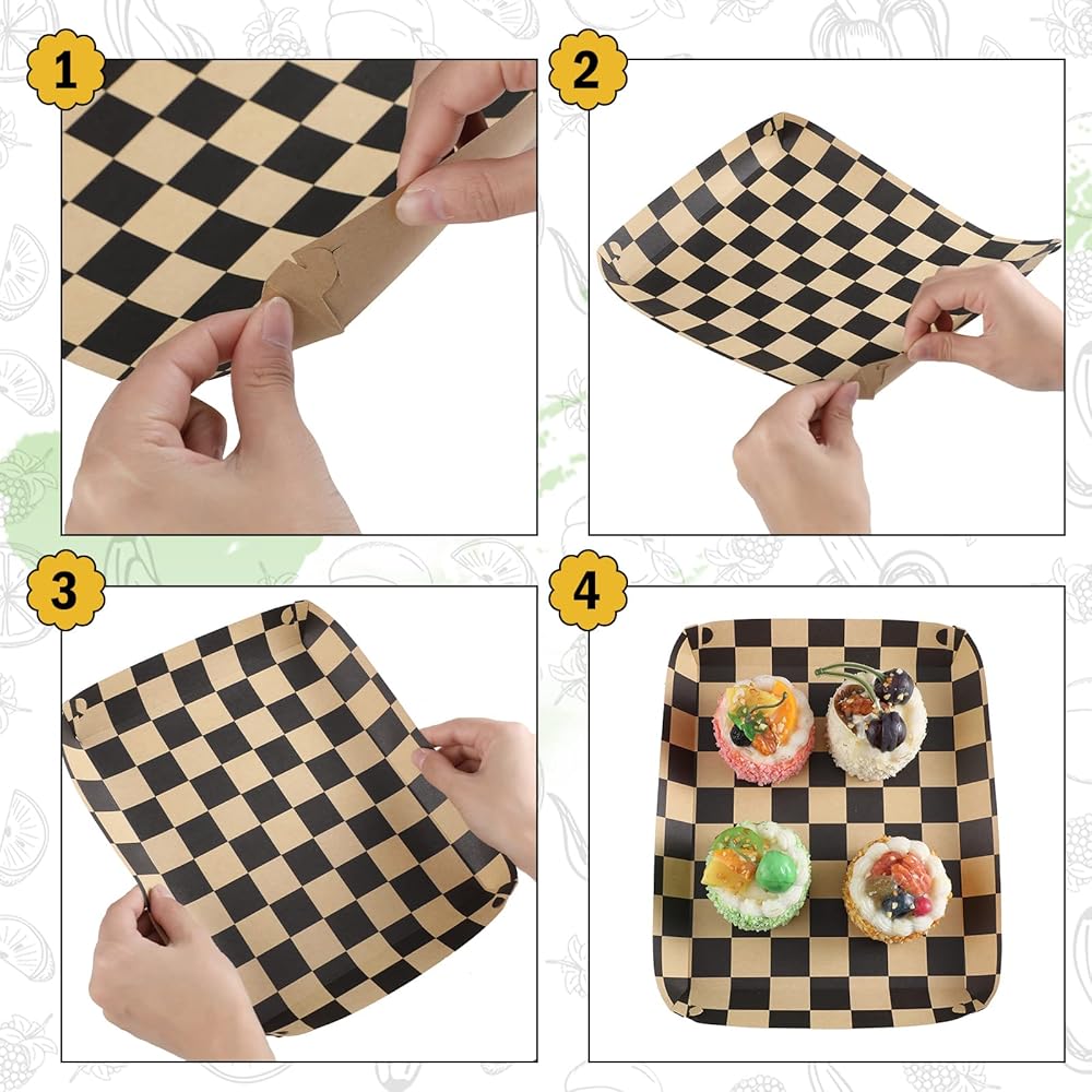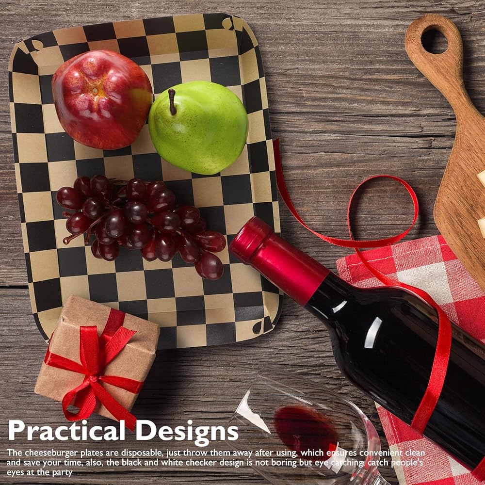 Practical Designs: the cheeseburger plates are disposable, just throw them away after using, which ensures convenient clean and save your time, also, the black and white checker design is not boring but eye catching, catch people's eyes at the party