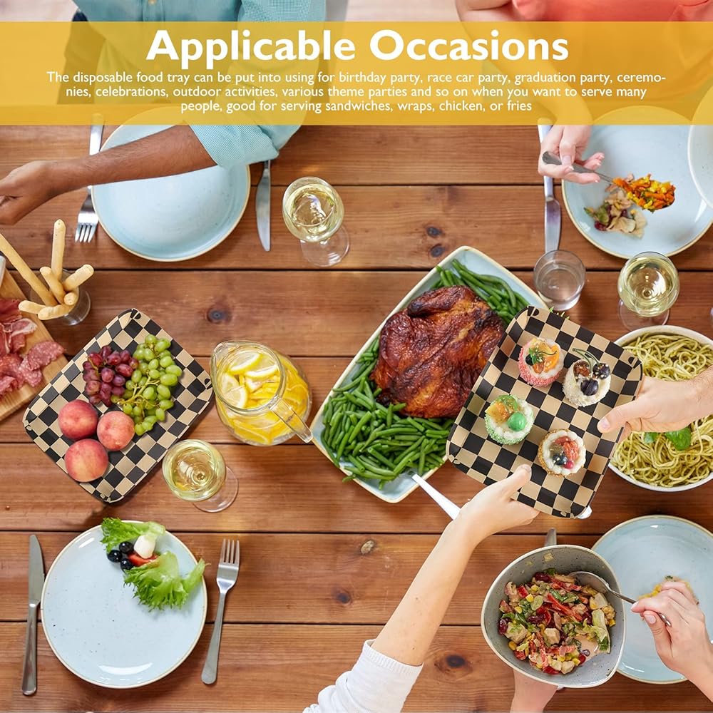 Applicable Occasions: the disposable food tray can be put into using for birthday party, race car party, graduation party, ceremonies, celebrations, outdoor activities, various theme parties and so on when you want to serve many people, good for serving sandwiches, wraps, chicken, or fries