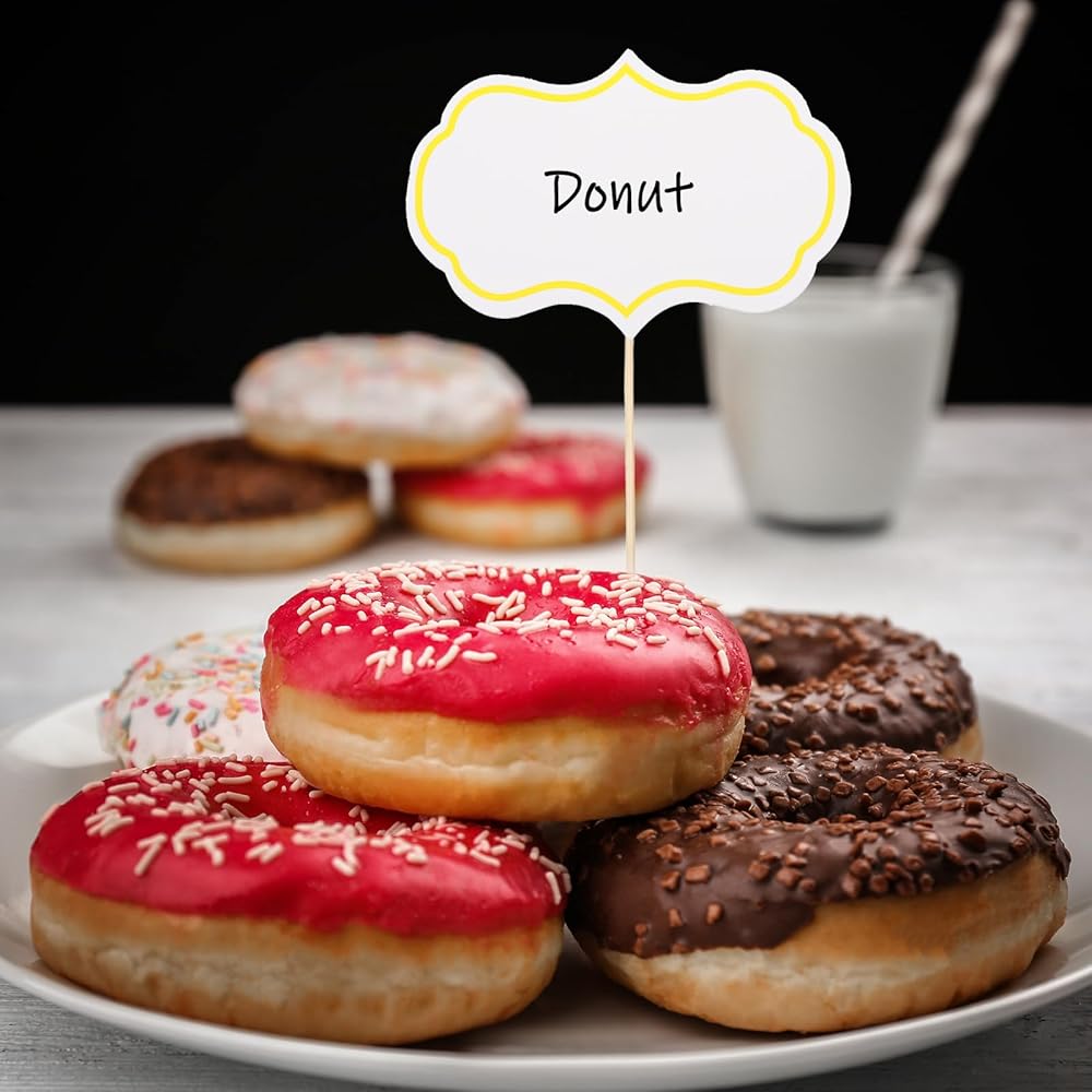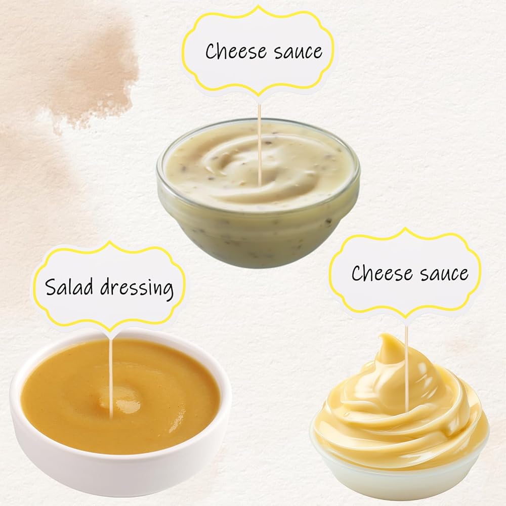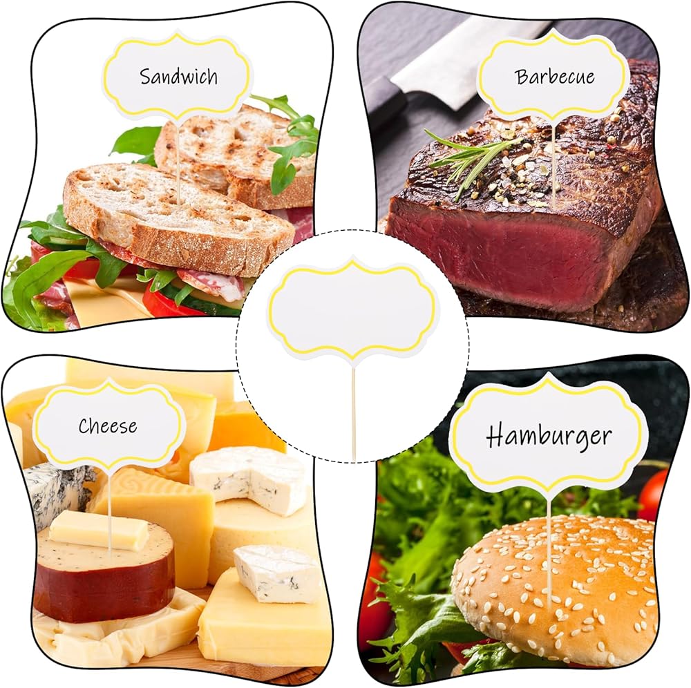 Double-Sided Blank DIY Design: Food signs for buffet made from high-quality, double-sided cardstock for durability and a smooth surface, these can be written on both sides, making it easy to add food names, flavors, or reminders for a personalized dining experience.