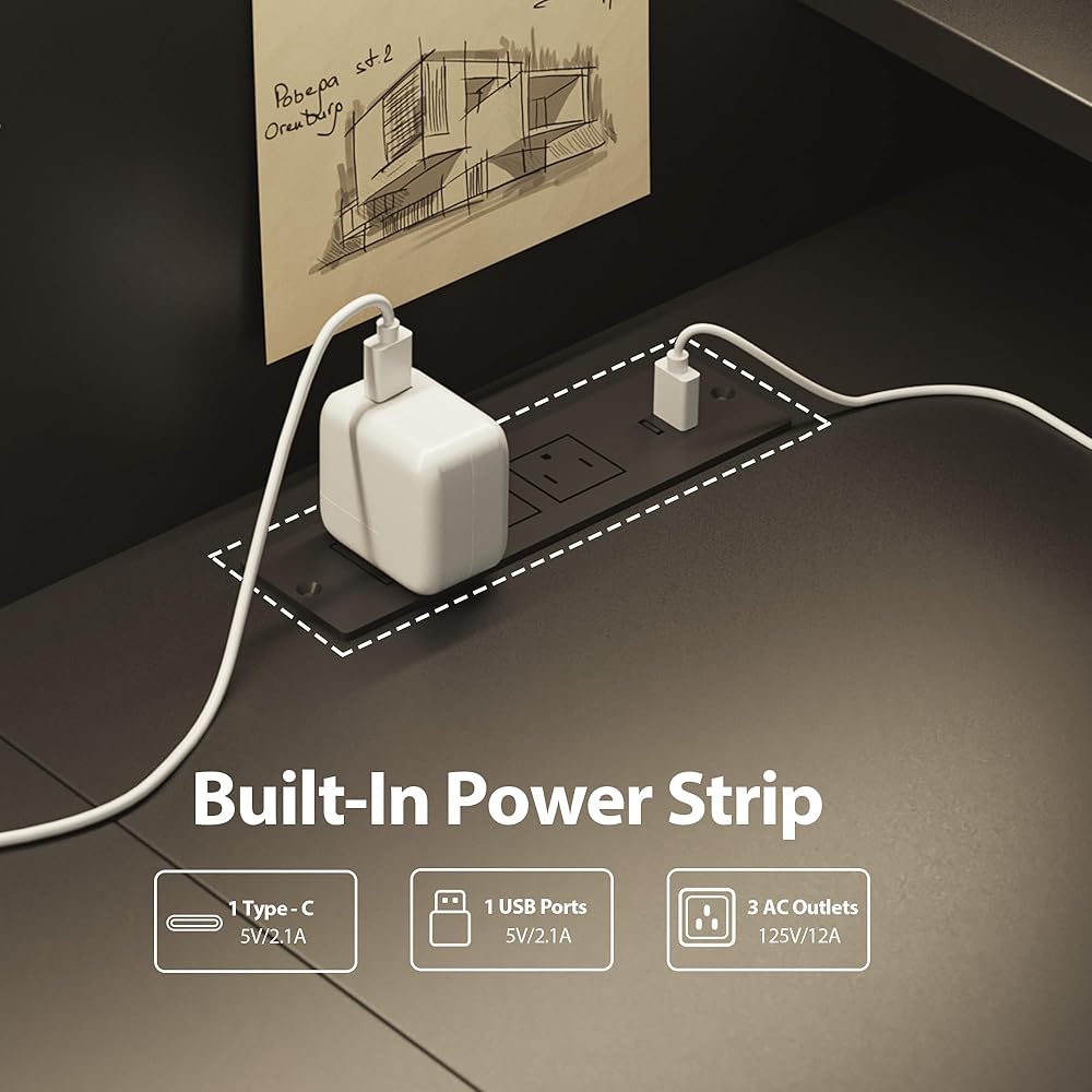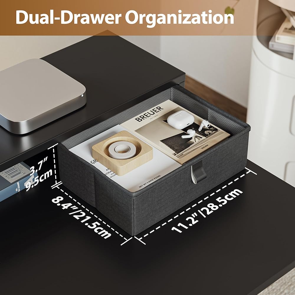 - 【مرتبة وعملية】تتضمن درجًا من القماش، وحلقتين للكابل، وخطافات مزدوجة. سطح المكتب منخفض المركبات العضوية المتطايرة يلبي معايير سلامة الهواء الداخلي.