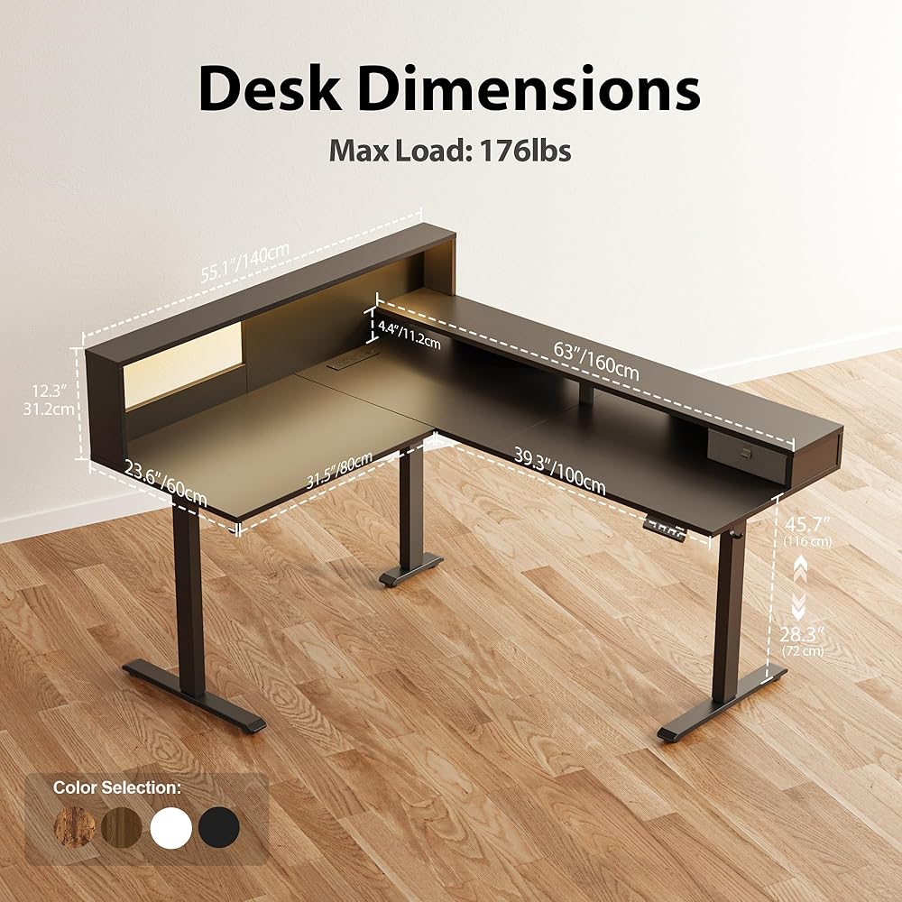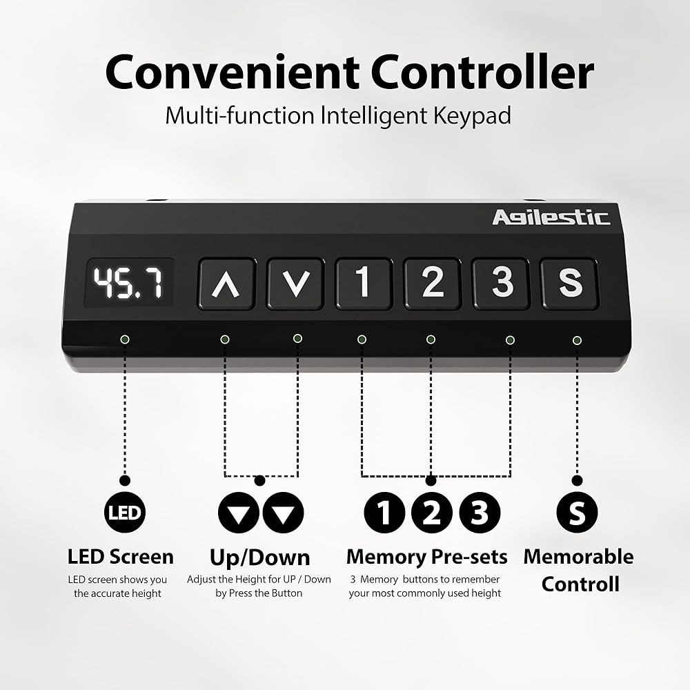- 【تعديل الارتفاع الكهربائي】يتم ضبطه من 27.8 بوصة إلى 45.9 بوصة مع محرك هادئ (<55 ديسيبل) وإعدادين مسبقين للذاكرة من أجل انتقالات الجلوس دون جهد.