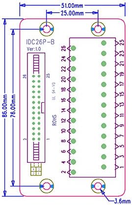 وحدة واجهة IDC-26 مع أقدام تركيب بسيطة لسكك DIN.