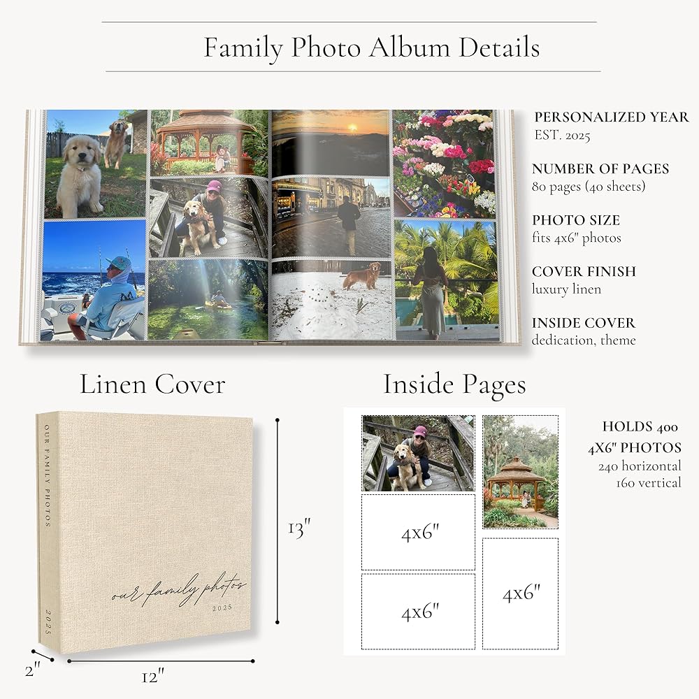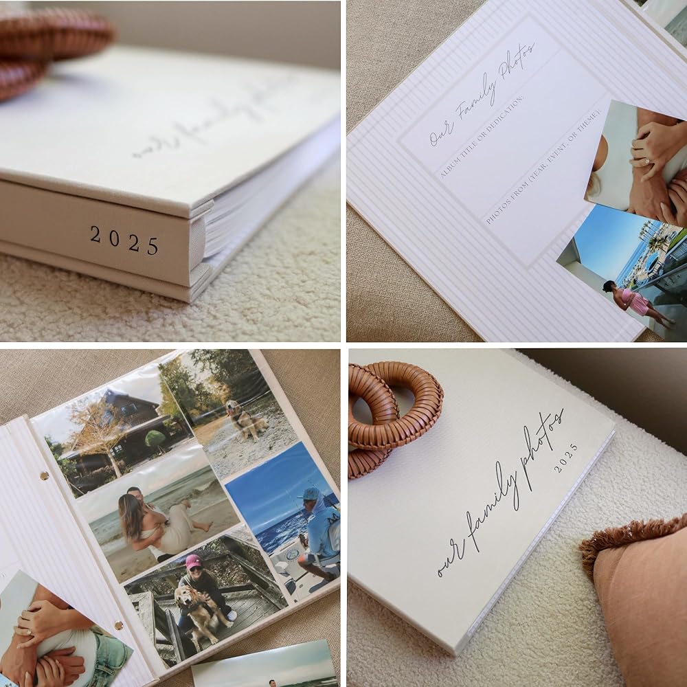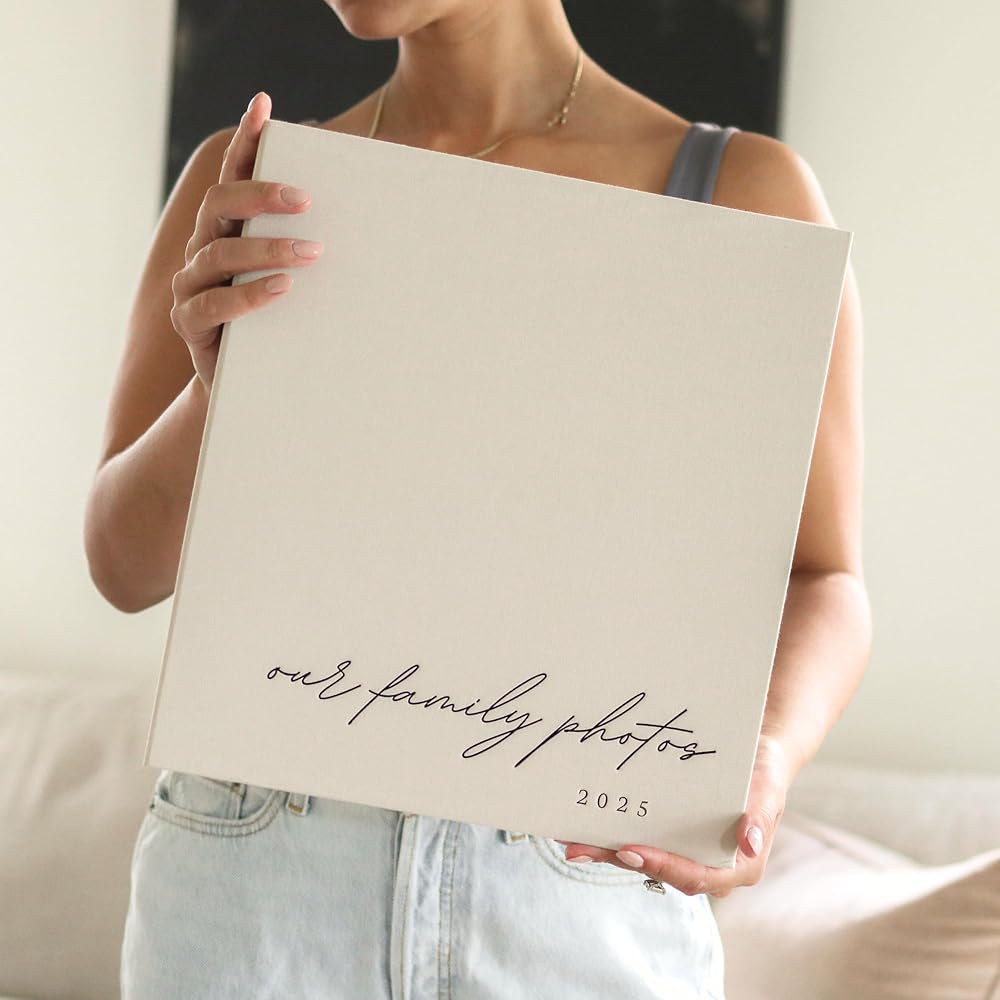 غطاء جميل من الكتان البيج - مصنوع من غطاء من الكتان الصلب المتين باللون البيج الفاتح المحايد ليكمل أي ديكور منزلي. النص المنقوش على الغلاف والعمود الفقري يجعل من السهل عرضه على الطاولة أو رف الكتب. حجم الألبوم: 13 بوصة × 12 بوصة × 2 بوصة.