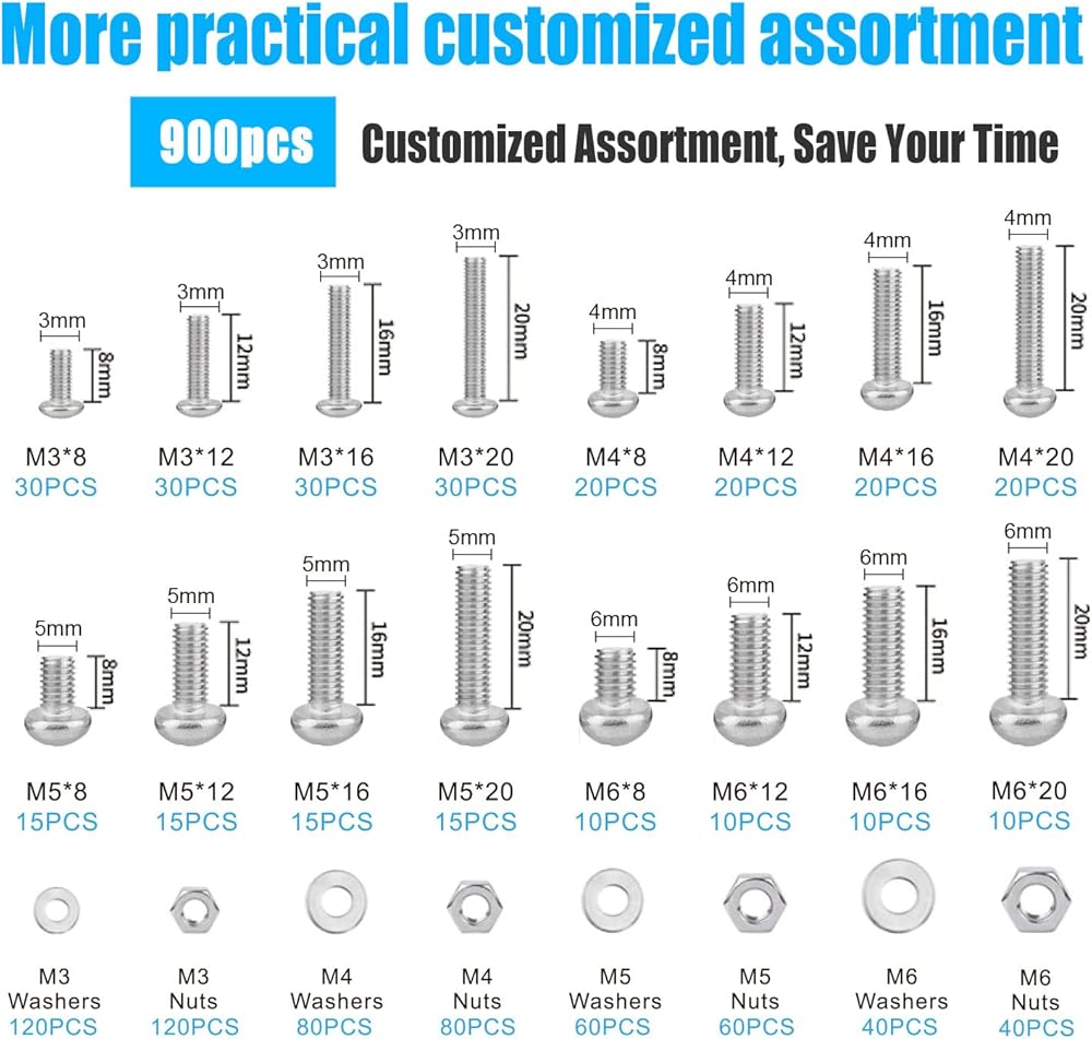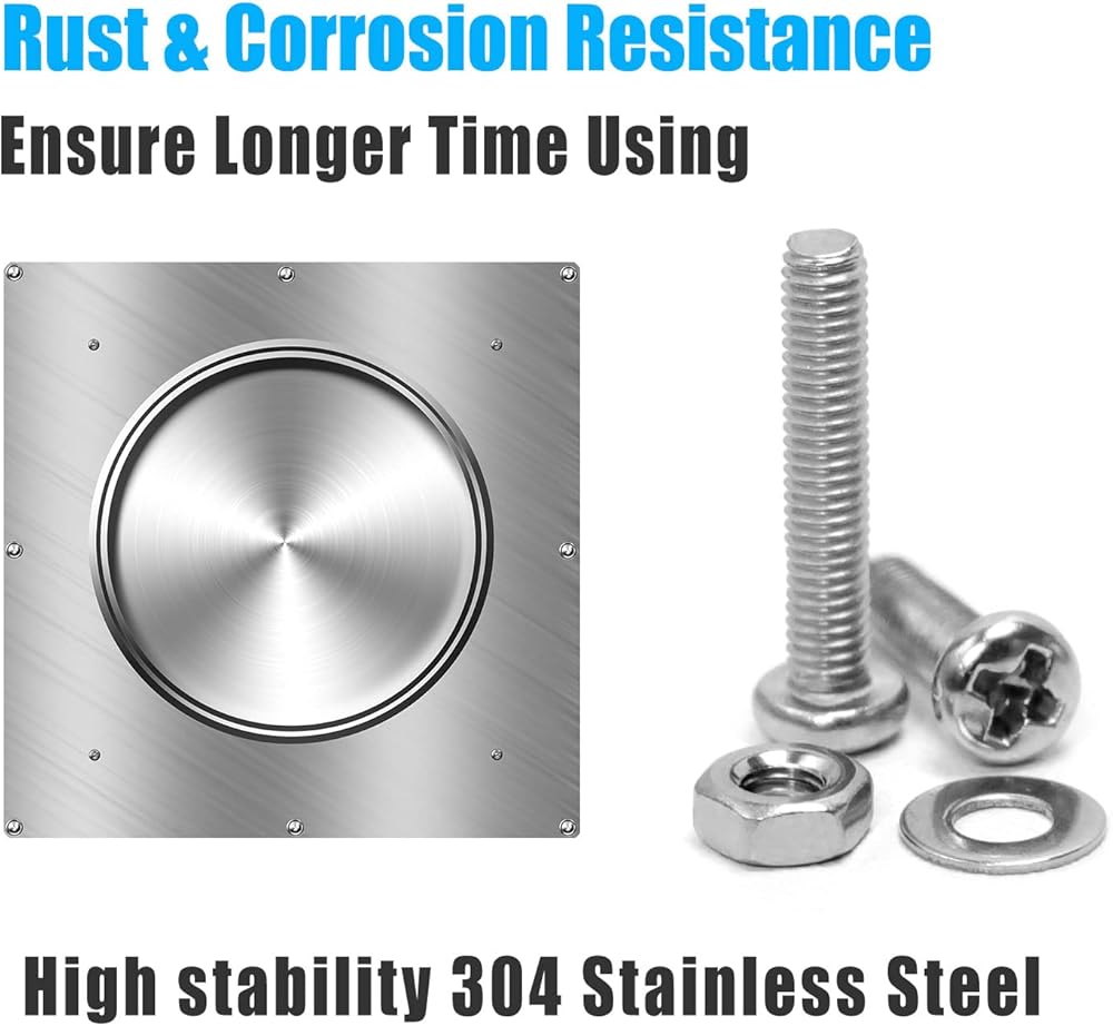 لماذا تشتري: 1 تتضمن براغي M3 M4 M5 M6 8 مم 12 مم 16 مم 20 مم تشكيلة 2 تحتوي على 660 قطعة 24 حجمًا من غسالات البراغي الأكثر استخدامًا لتلبية الاحتياجات المختلفة 3 مصنوعة من الفولاذ المقاوم للصدأ 304 عالي الجودة الأداء الجيد لمقاومة الصدأ والتآكل والأكسدة لضمان الاستخدام لفترة طويلة حتى في البيئة السيئة 4 الخيط هو حاد جدا و قوي لا يمكن تجريده بسهولة باستخدام مسدس البراغي ويمكن تعبئته في حقيبة مريحة متينة يمكن استخدامها كصندوق تخزين منظم لك 5 يستخدم على نطاق واسع في أثاث الدراجات ولوحة ترخيص السيارة والتوصيلات الكهربائية على مصدر الطاقة للأجهزة المنزلية والتجارية وغيرها من الأماكن الداخلية أو الخارجية