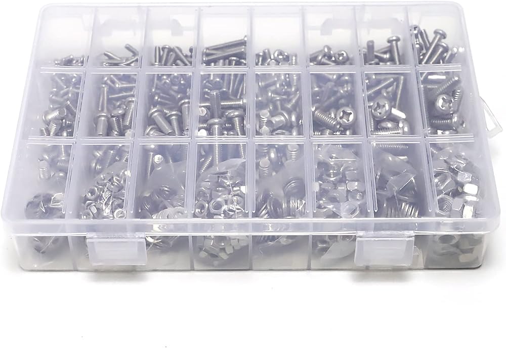 【الكمية】: تحتوي على 660 قطعة/24 مقاسًا من البراغي ذات الغطاء السداسي من الستانلس ستيل 304 الأكثر استخدامًا.
