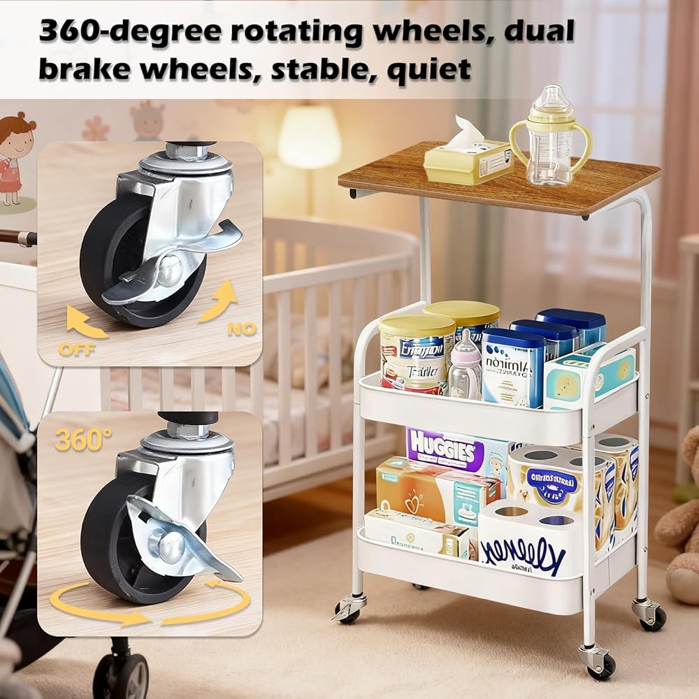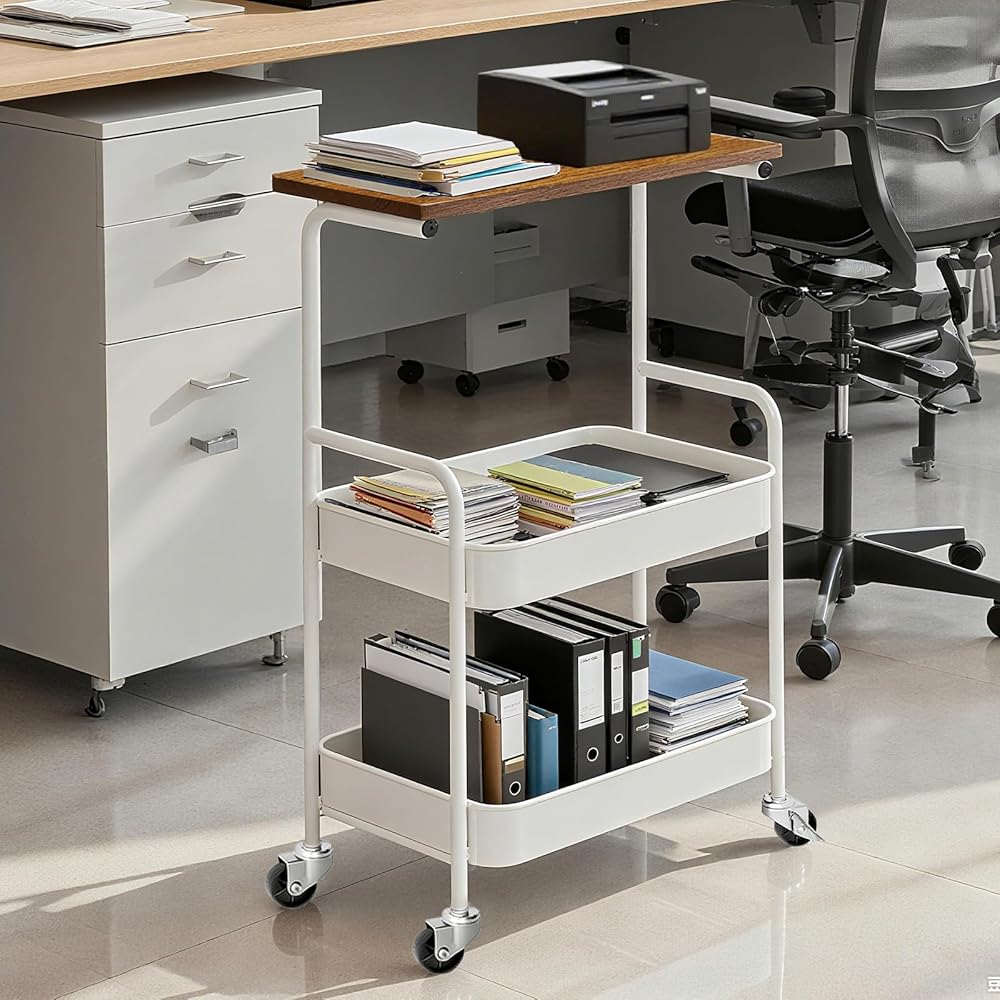 【Versatile Use in Any Room】Whether as a kitchen rolling storage organizer cart, a mobile office printer stand, a bathroom supply caddy, or a bedroom side table, this 3 tier rolling cart adapts to your lifestyle while maximizing space.