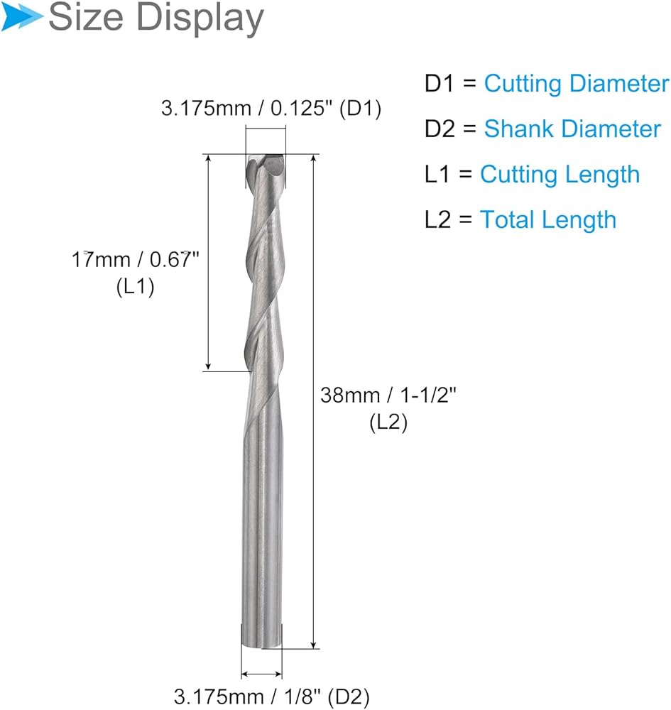 ★ Wide Applications --- Spiral end mills are suitable for wood, nylon, acrylic, resin, MDF, plywood, hardwood, and plastic. It can be used for slotting, profiling, cutting, milling, and sculpturing.
