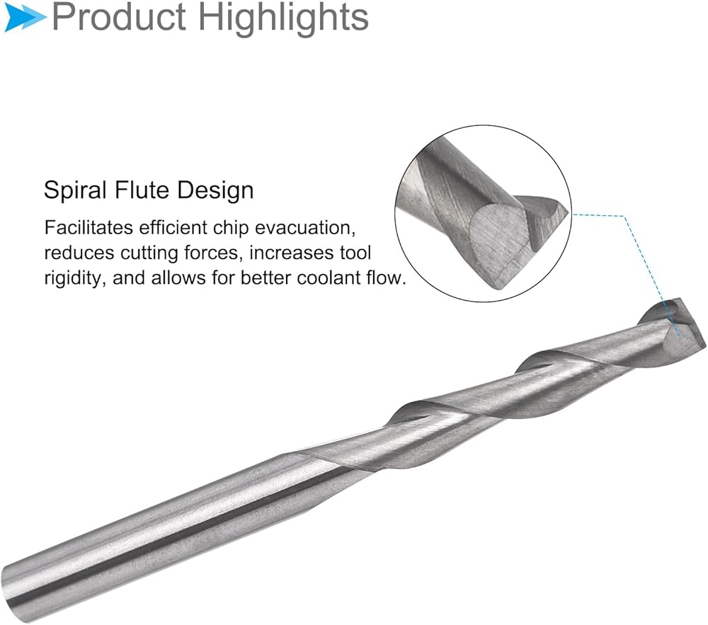 ★Spiral Flute Design --- Facilitates efficient chip evacuation, reduces cutting forces, increases tool rigidity, and allows for better coolant flow to the cutting area. Sharp cutting edges provide smooth cuts without burrs for increased efficiency.