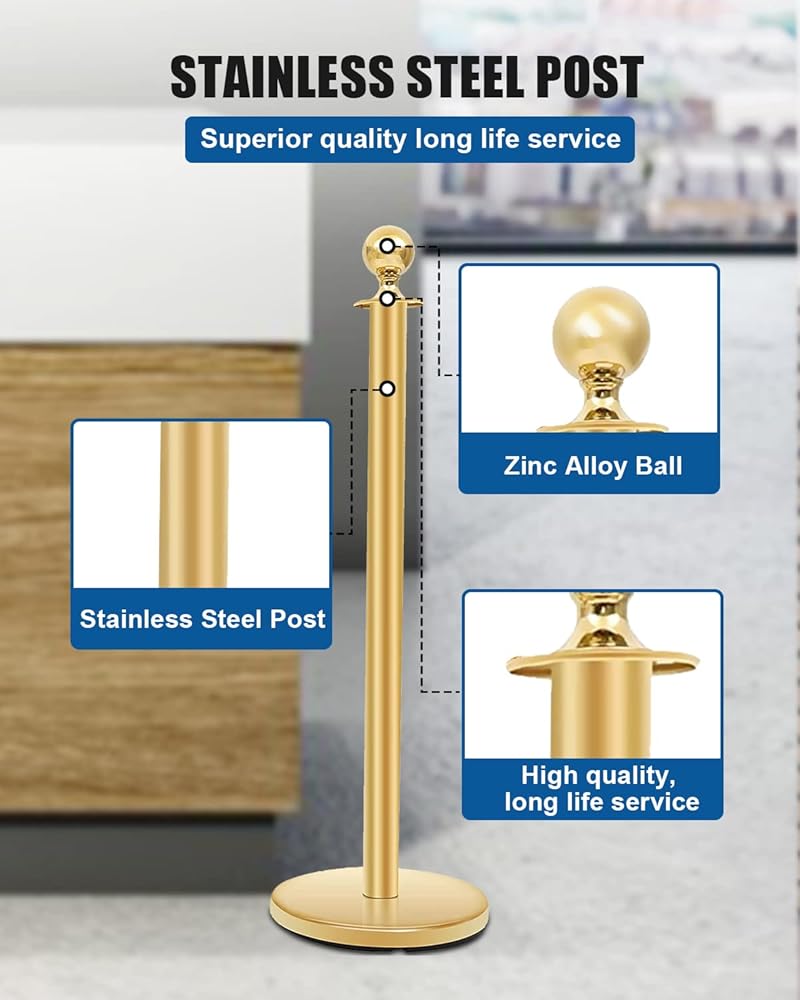 🎁 مادة الدعامة الذهبية: شريط التحكم في الحشود الذهبي مصنوع من الفولاذ المقاوم للصدأ عالي الجودة، وهو مقاوم للصدأ ومقاوم للتآكل، ويمكن أن يطيل عمره.