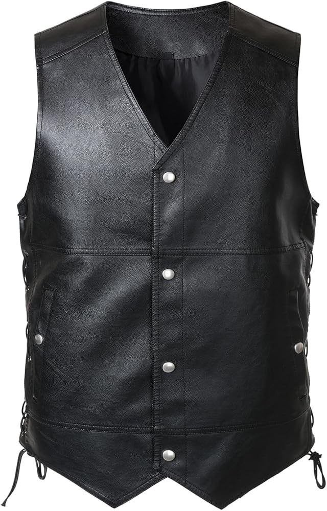 【التفاصيل】: سترة جلدية لراكبي الدراجات النارية مع أربطة جانبية جلدية قابلة للتعديل للحصول على ملاءمة مثالية. جيبان مائلان للأزرار عمليان ورائعان. إنها مريحة للعناية بمفاتيحك وبطاقتك أو أي أشياء صغيرة أخرى.