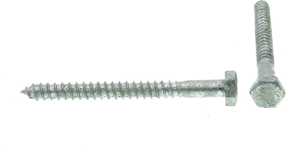 Lag screw bolts are used in place of standard wood screws whenever the mounting surface must bear a heavy load. The hex head allows for lag screws to be tightened with more torque than can be used on phillips head screws, though a pilot hole is still required prior to installation. Note that lag screws do not accept nuts as they are technically thick heavy duty wood screws with threads designed to cut into wood. They are ideal for use on decks since installation can be accomplished without having access to both ends of the fastener, as opposed to standard hex bolts that require a nut on the opposite end.