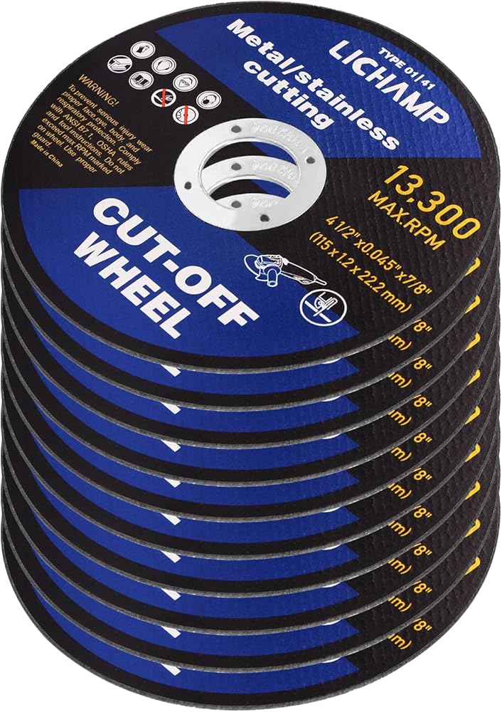 Lichamp 4-1/2 عجلات مقطوعة للمعادن، 10 عبوات 4.5 بوصة قرص قطع عجلة القطع، 4.5 بوصة × 0.045 بوصة × 7/8 بوصة، A010BK