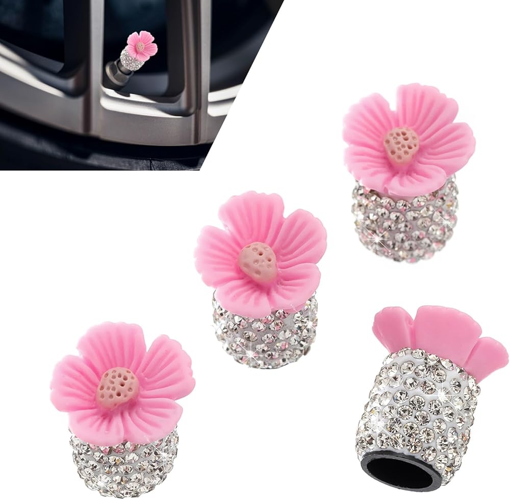 1. The tire valve caps feature exquisite rhinestones paired with cute flower shapes, combining aesthetics and durability, making them a fashionable choice for female car owners.