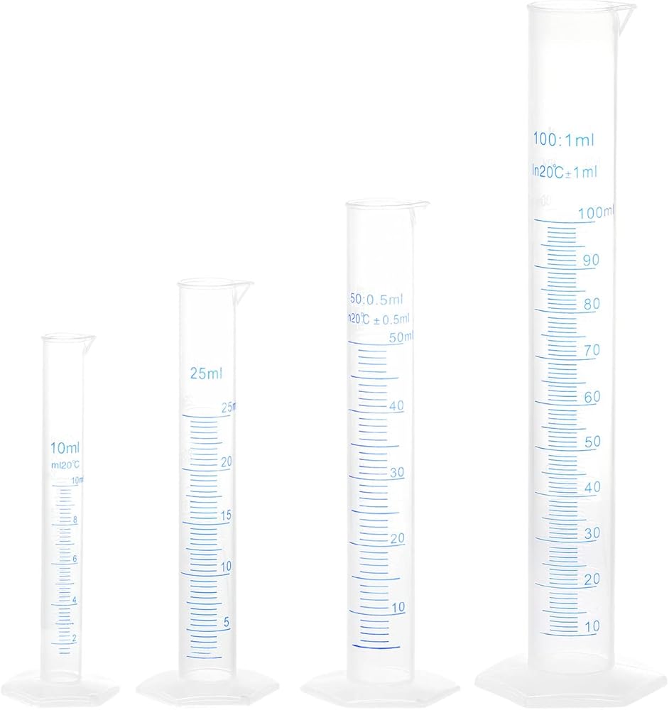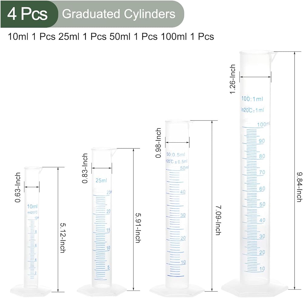 √ ما تحصل عليه - تأتي العبوة مع 4 قطع أسطوانة متدرجة، بحجم: السعة: 10 مل، 25 مل، 50 مل، 100 مل.