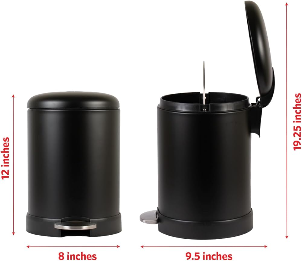 ابقِ الغطاء مفتوحاً لتسهيل إزالة النفايات: ببساطة ارفع الغطاء يدوياً وقم بإمالته للخلف بمقدار 90 درجة ليبقى مفتوحاً لإزالة القمامة بسهولة. لا تضغط على الدواسة عند فتح الغطاء باليد. متوافقة مع أكياس القمامة سعة 4 جالون، وأكياس القمامة سعة 8 جالون.