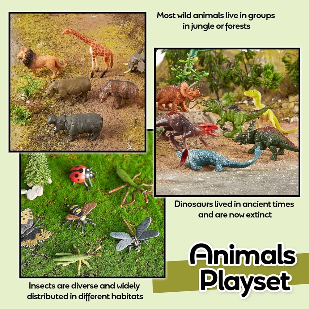 مجموعة تماثيل حيوانات 3 في 1: تتضمن 3 أنواع من الحيوانات - الديناصورات وحيوانات المحيط وحيوانات الغابة. يمكن للأطفال استكشاف أسرار ما تحت البحر والديناصورات وحتى الأدغال.