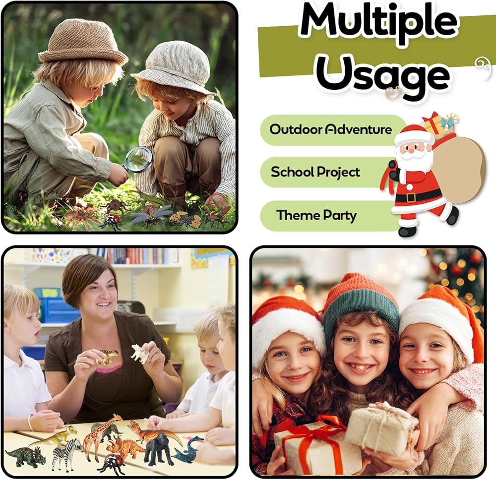 مجسمات حيوانات واقعية: يتمتع كل حيوان بملمس جلدي واقعي وملامح واضحة، تمامًا مثل الحيوانات الحقيقية. يمكن للأطفال التعرف عليهم بسهولة ومعرفة المزيد عن الحيوانات. الحجم حوالي 0.7-3.7 بوصة. مصنوعة من مادة بلاستيكية، متينة ومستقرة. مناسب للأيدي الصغيرة للإمساك به.