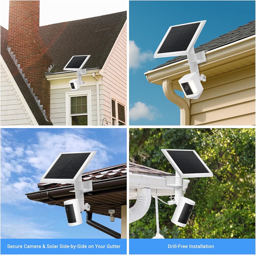 【تركيب فوري بدون ثقب】قم بسهولة بتركيب الكاميرا الحلقية واللوحة الشمسية مع دعامة التثبيت هذه بدون ثقب. تم تصميمه ليتم تثبيته بأمان على جميع أنواع الميزاب (نمط K، نصف دائري، صندوق، فاسيا)، يتم تركيب حامل كاميرا الأمان الخارجي هذا في ثوانٍ دون أدوات أو تلف