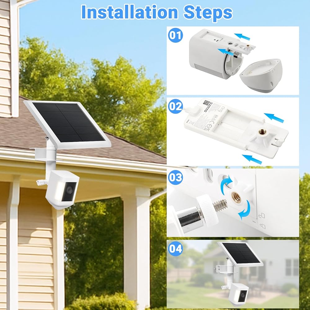 【قابلة للتعديل بزاوية 360 درجة للحصول على رؤية مثالية وضوء الشمس】ارفع كاميرا Ring Stick Up أو كاميرا Spotlight لتغطية مراقبة أوسع أثناء تثبيت اللوحة الشمسية لالتقاط أقصى قدر من ضوء الشمس. استمتع بالشحن المستمر والمراقبة الواضحة دون وجود مناطق ميتة أو تبديل البطارية بشكل متكرر