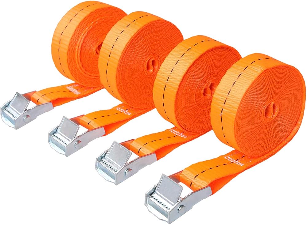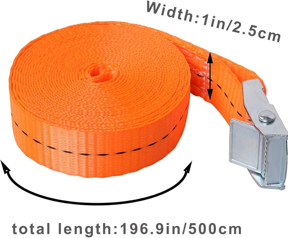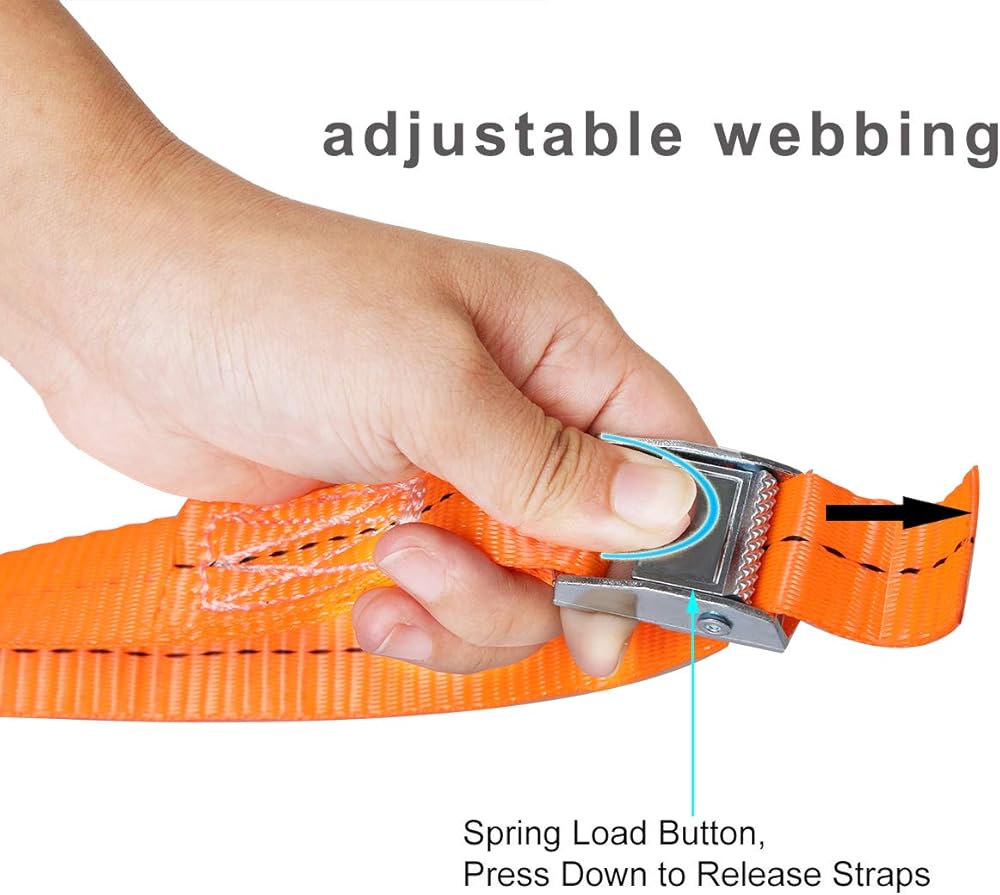 حزام رموش JAKAGO 2.54 سم × 40.64 سم مع قفل كام، أشرطة ربط لأسفل تصل إلى 600 رطل، من أجل الشحن المثبت وحقائب الكاياكس والكانوين المتحركة ومعدات العشب عبوة من 4 قطع