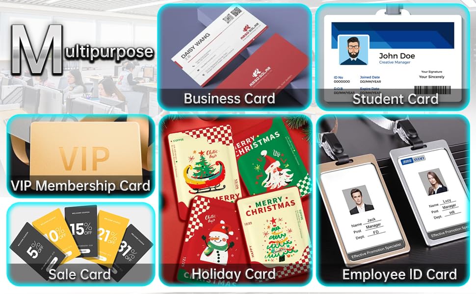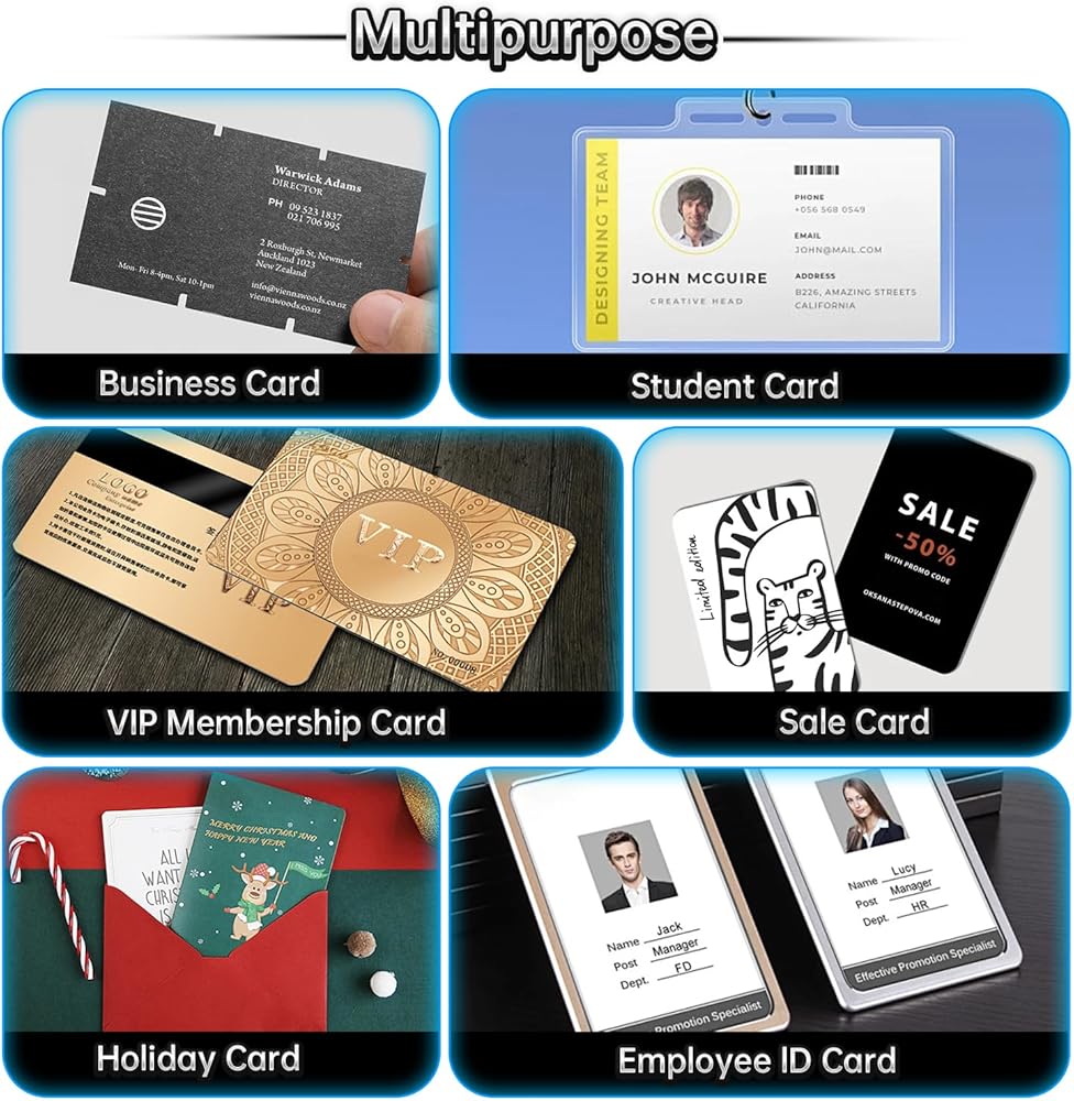 【تطبيقات واسعة】تلبي بطاقات الهوية البلاستيكية هذه الاحتياجات المتنوعة، وأغراض الخدمة مثل شارات الهوية، وشارات المكتب، وبطاقات الولاء، وبطاقات الهدايا، وهويات الطلاب، وبطاقات العمل، وحتى كبدائل لبطاقات الألعاب التقليدية.