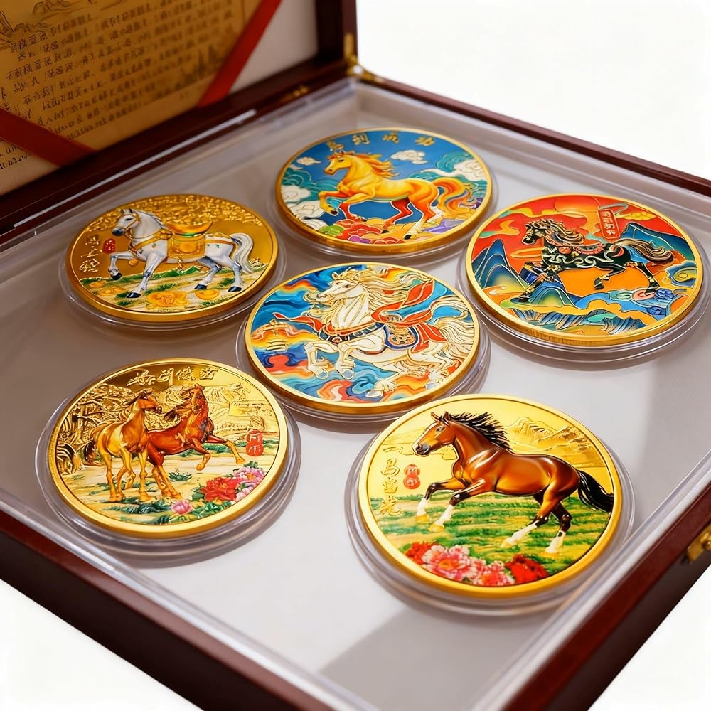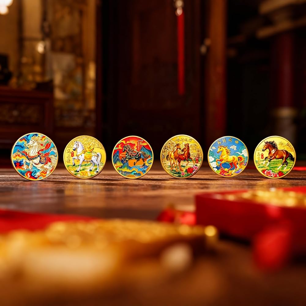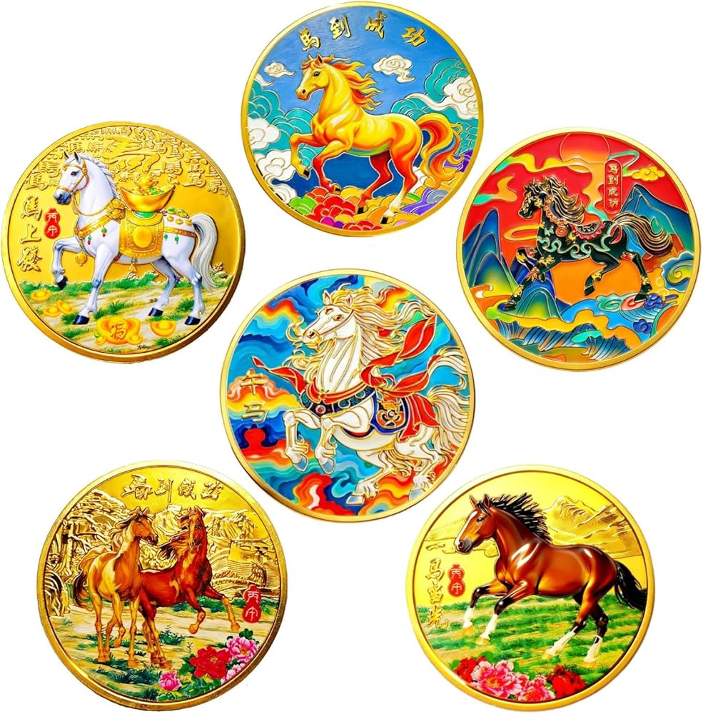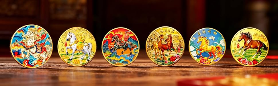 السحر الآسيوي الأصيل: ارفع مجموعتك من خلال مجموعتنا المكونة من 6 عملات معدنية للحظ السعيد تضم مخلوقات أسطورية آسيوية قديمة - 5 Loongs وThe Koi Fish. كل عملة هي رمز الحظ والسحر.
