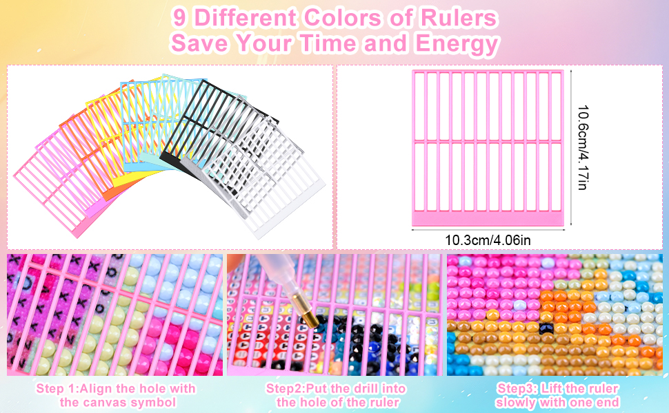 مجموعة أدوات الفن الماسي: سوف تحصل على تسعة ألوان من مسطرة الرسم الماسي. كمية كافية لتلبية احتياجاتك في الرسم الماسي على المدى الطويل