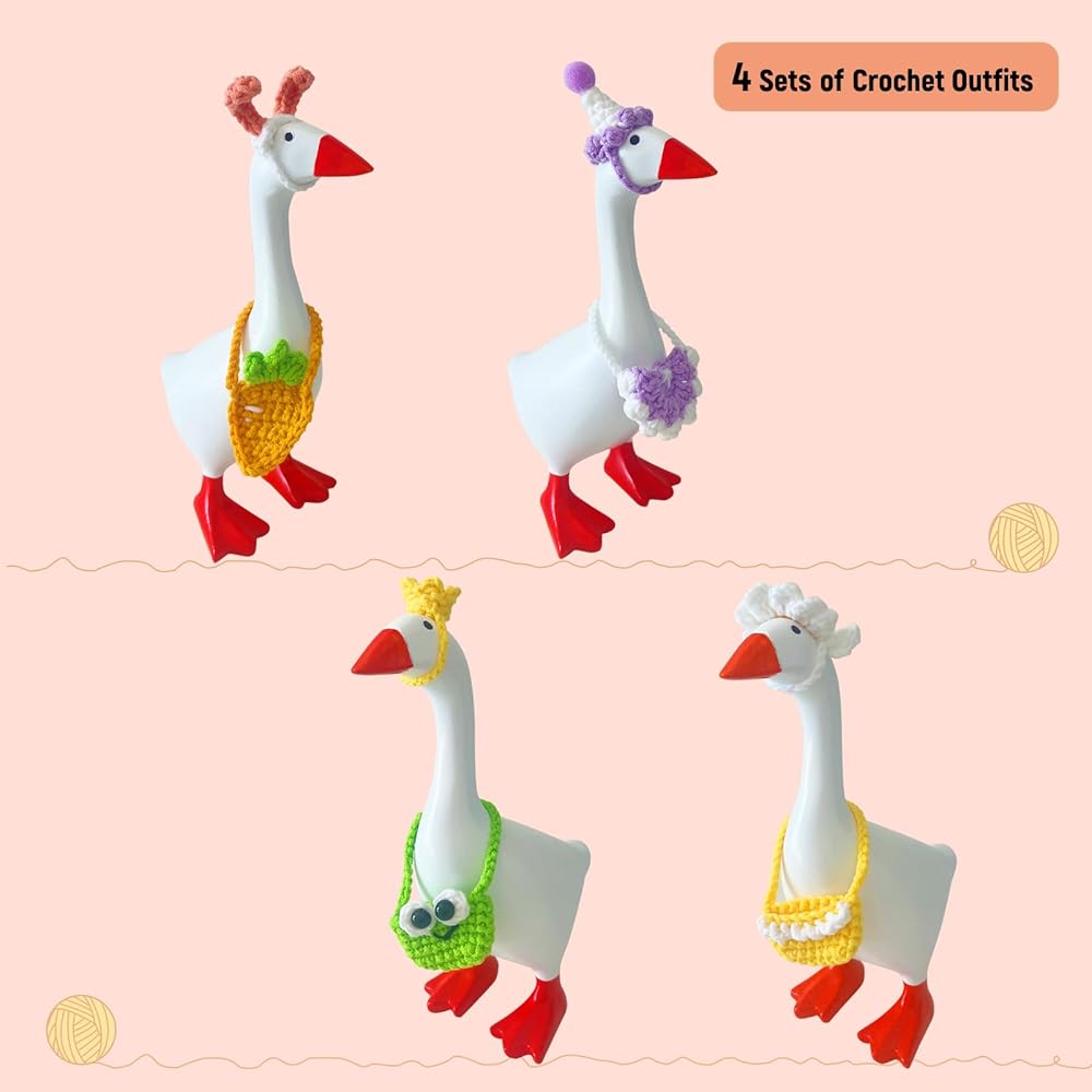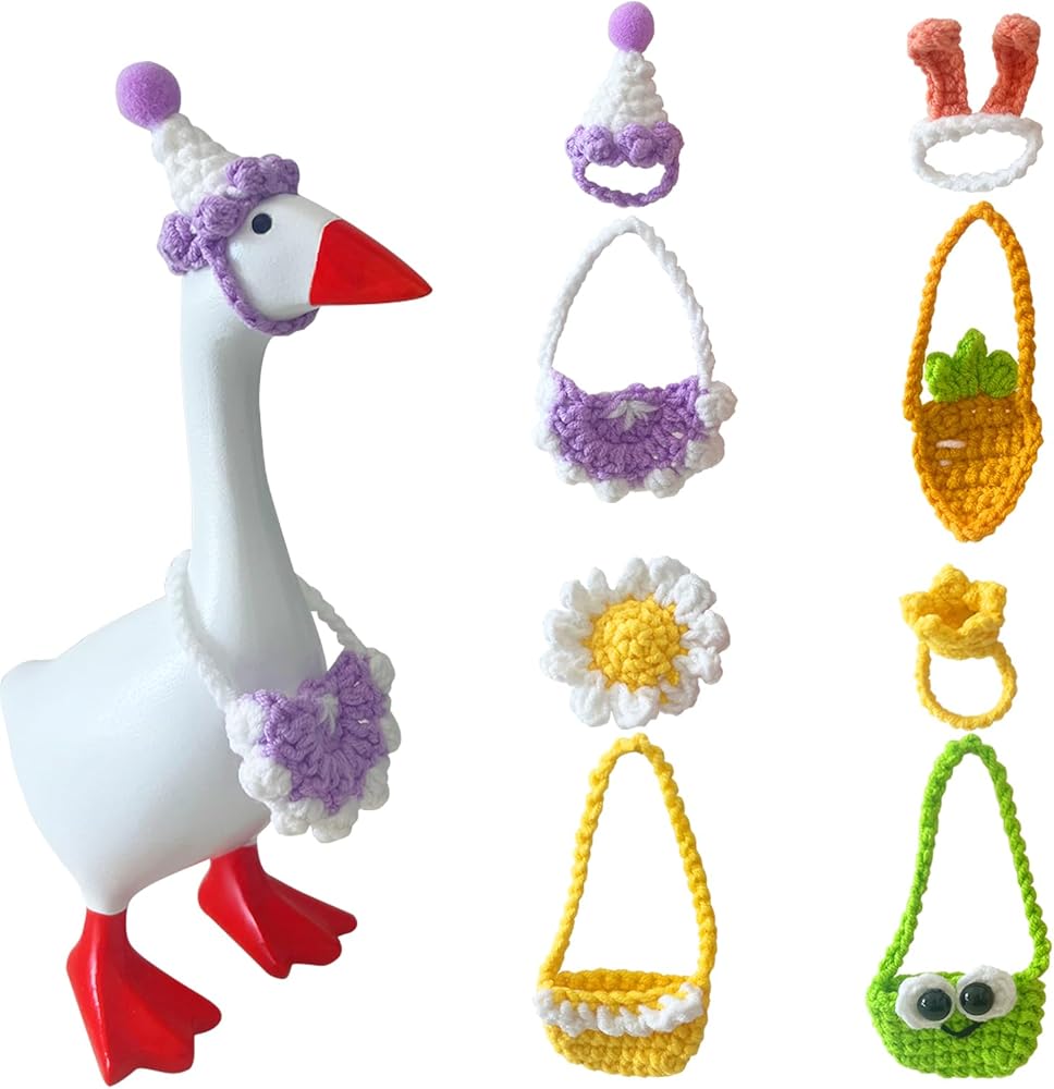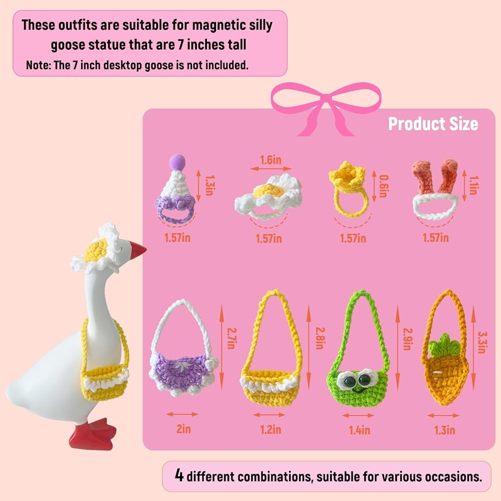 كروشيه مصنوع يدويًا: هذه الملابس الصغيرة مقاس 7 بوصات مصنوعة من الكروشيه بخيوط عالية الجودة، وكل تفاصيل تعرض السحر الفريد للفن المصنوع يدويًا. إن صناعة الكروشيه تجعلها متينة للغاية ومقاومة للتمزق والبقع. إنها المكمل المثالي لتمثال الأوز السخيف الخاص بك والإضافة المثالية لمكتبك