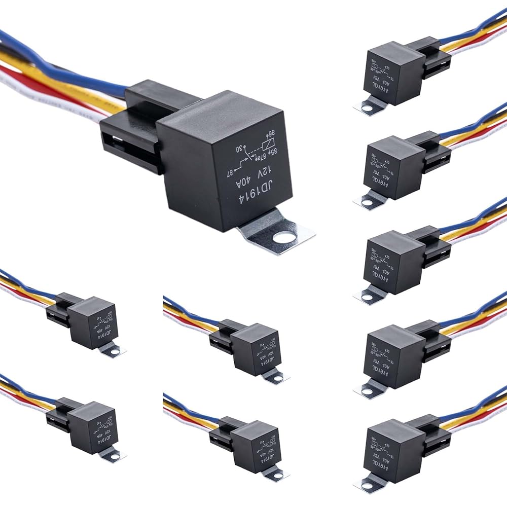 10 عبوات 12 فولت 40/30 أمبير 5 دبوس SPDT للسيارة مع سرج - أسلاك نحاسية شديدة التحمل 12 AWG، متوافقة مع قارب دراجة نارية لشاحنة السيارات