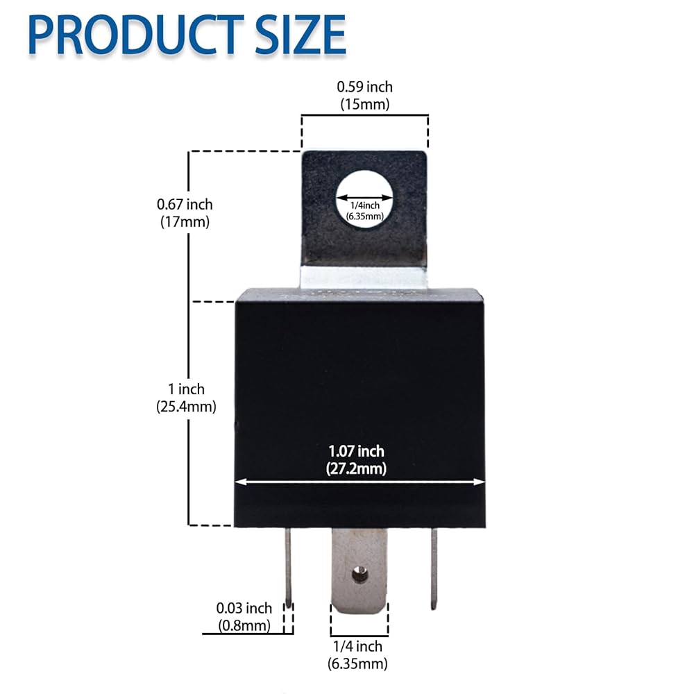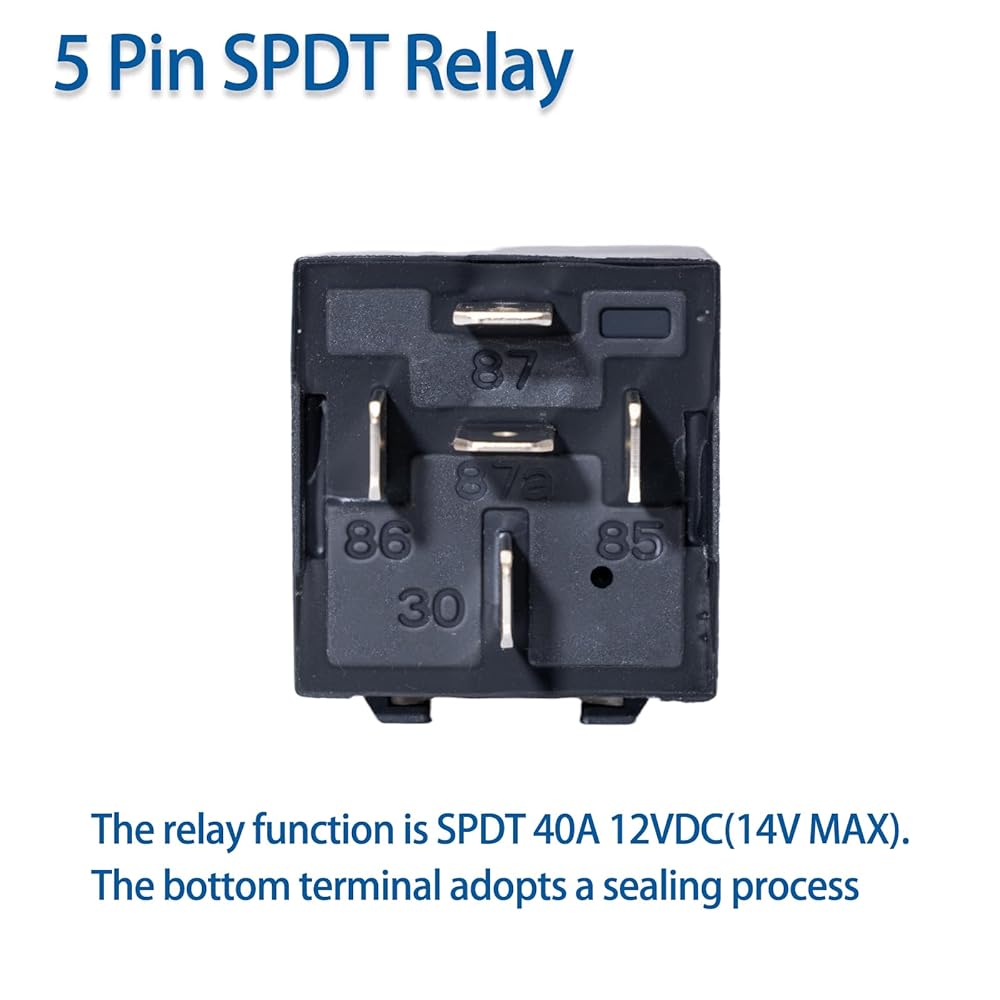 - الوظيفة: 12VDC (14V Max) 5 Pin SPDT Relay مع قدرة تحويل عالية 40A/30A.