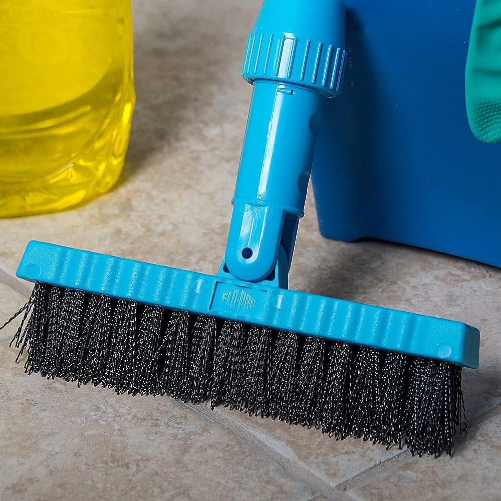 Stiff crimped nylon bristles remove dirt, grime and residue.This brush has bevel cut bristles that get into grout lines and cleans grout from a standing position. The pivoting head lets the brush glide along grout lines, in corners, and other hardtoreach areas.