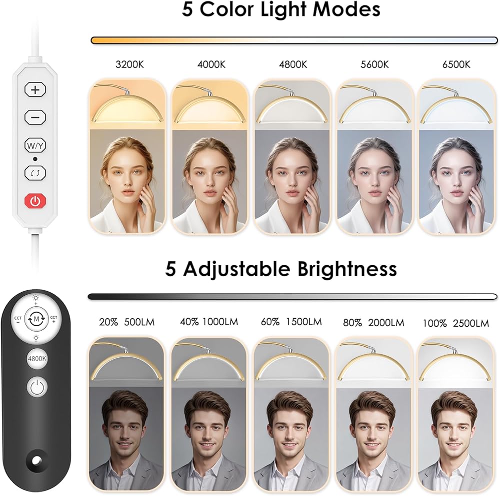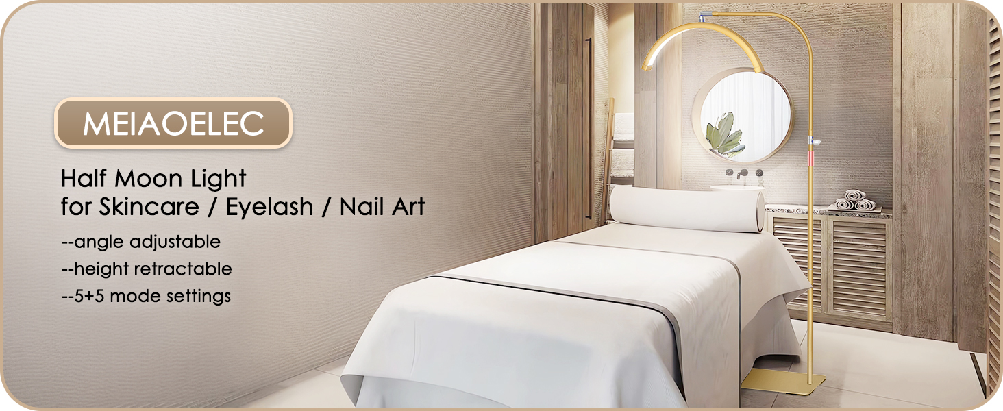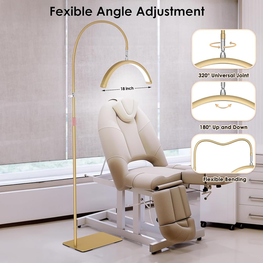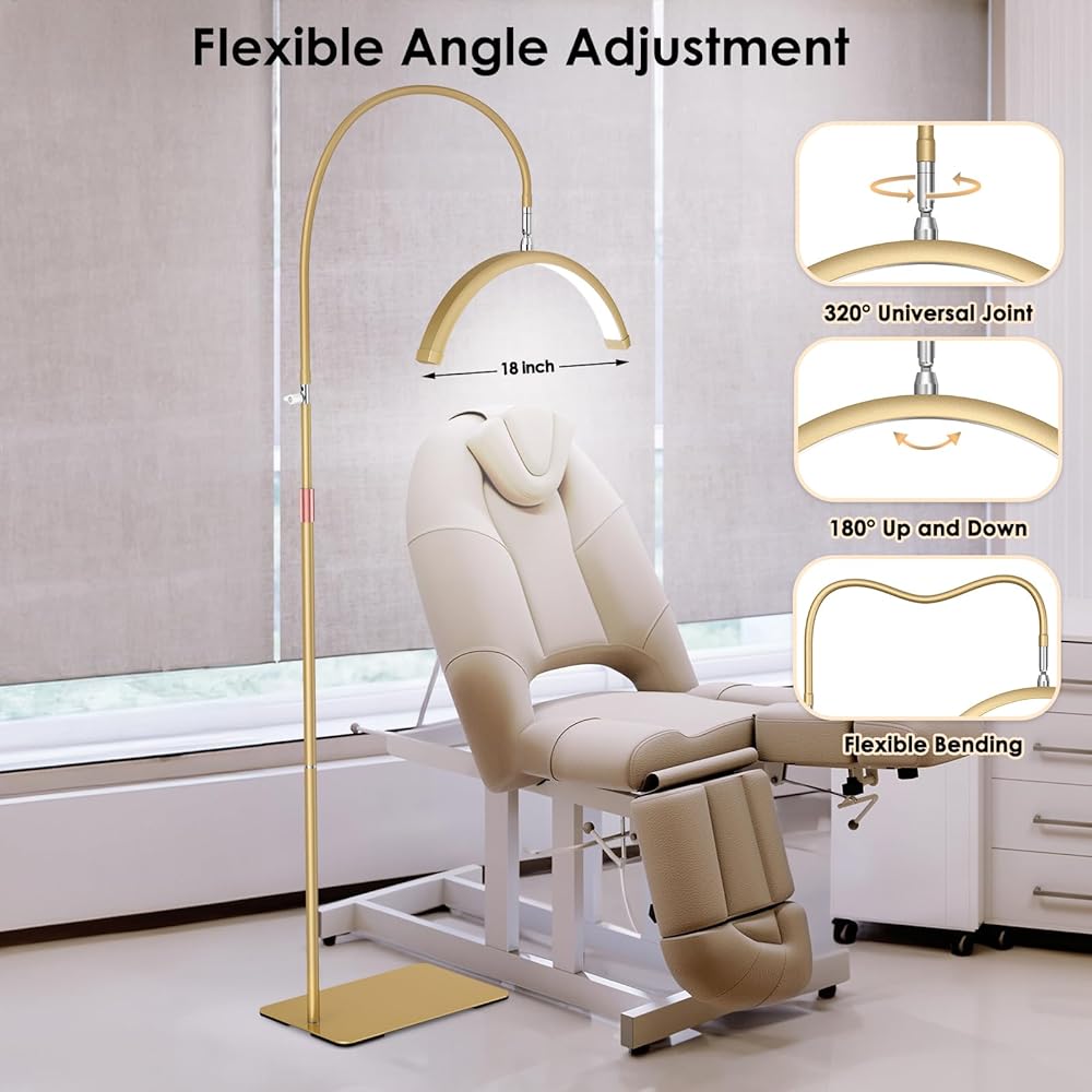 سيناريوهات إضاءة متعددة - ضوء نصف القمر الخاص بنا واسع بما فيه الكفاية ويوفر إضاءة خالية من الظل. يسمح لك القضيب التلسكوبي القابل للتعديل بتخصيص الارتفاع ليناسب الخدمات المختلفة. تصميم احترافي للعناية بالبشرة والرموش وفن الأظافر والمنتجعات الصحية والمكياج واستوديو الوشم وصالونات التجميل.