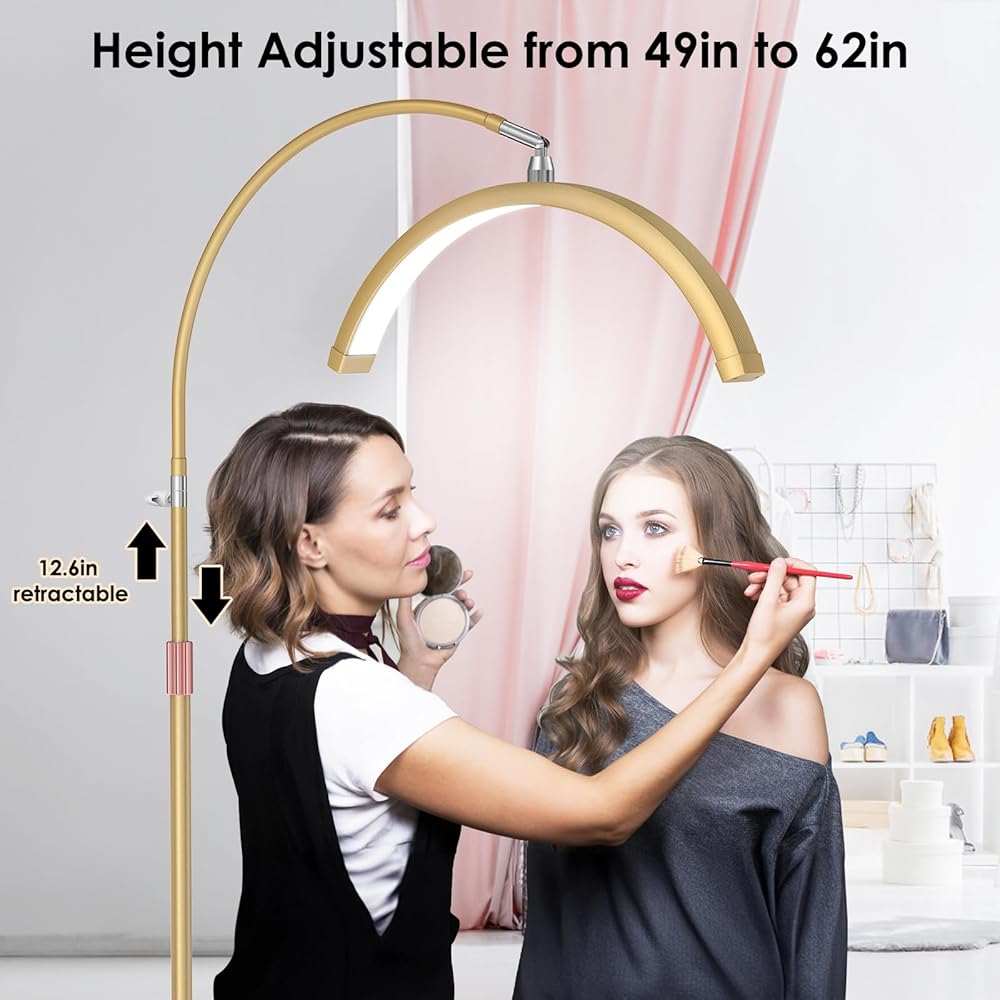 ضوء رموش، ضوء نصف قمر مرن مع حامل هاتف للعناية بالبشرة وشم الرموش والأظافر، 5 درجات حرارة ألوان وإعدادات سطوع، مصباح أرضي LED، مصباح تجميلي قابل للتعديل