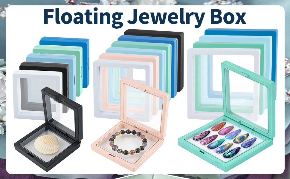 Complete Set with Accurate Size: Each package includes 20 pcs floating jewelry display holders, available in 4 ocean-inspired colors: white, mint green, blue, and sky blue. The outer box measures 2.7 x 2.7 x 0.8 inches, with a usable size of 2.2 x 2.2 inches, making them ideal for showcasing small collectibles while remaining compact and lightweight.