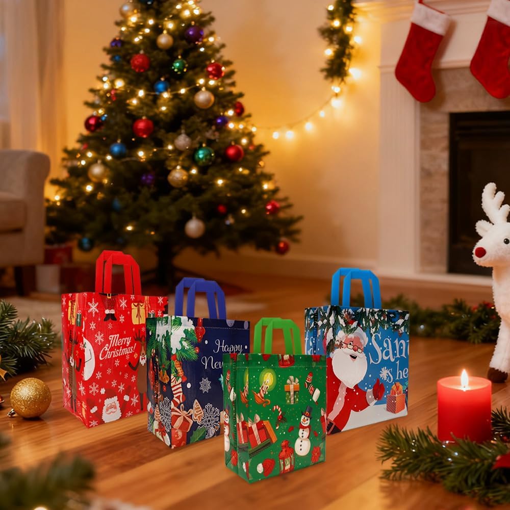 Great Value: You will receive a total of 12 pcs Christmas gift bags in 4 styles, 3 of each style. Adequate quantity and diverse styles allow you to freely match according to different occasions and preferences, fully meeting the diverse needs during the holiday season
