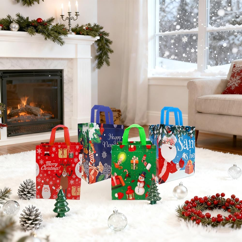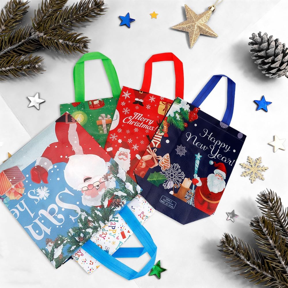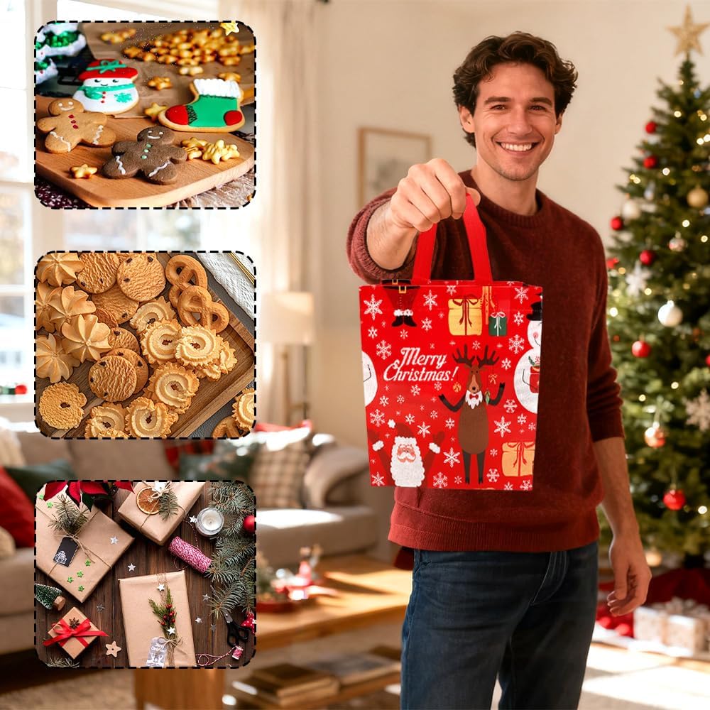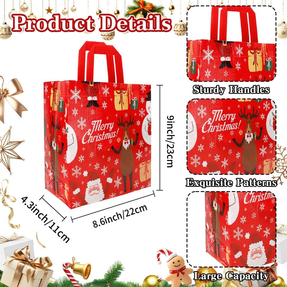 Perfect Size: The size of each Christmas non-woven treat bag is 23 x 22 x 11 cm/9 inches x 8.6 inches x 4.3 inches, making it the perfect size and quantity for holding Christmas gifts, candy, and more. The Christmas bags come with a handle above, making it easy to carry and give gifts to neighbors, teachers, friends, customers, and colleagues