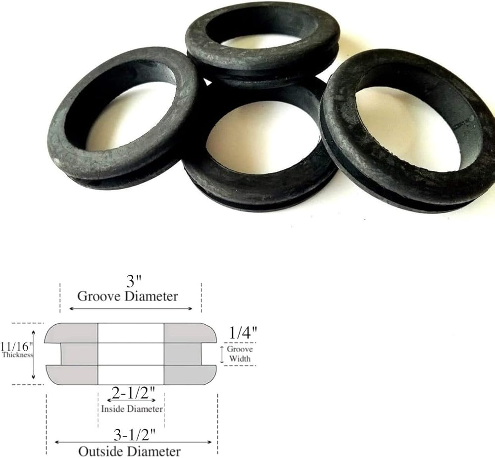 مجموعة من 4 حلقات مطاطية شديدة التحمل بقطر داخلي 2-1/2 بوصة - تناسب فتحات لوحة 3 بوصة تتضمن العبوة: 4 حلقات مطاطية المواصفات: القطر الداخلي: 2-1/2 بوصة عرض الأخدود: 1/4 بوصة قطر الأخدود: 3 بوصة القطر الخارجي: 3-1/2" السُمك: 11/16" يمكن استخدامه لإغلاق الثقوب، على الأنابيب البلاستيكية، وحماية الأسلاك من الأشياء الحادة والعديد من الاستخدامات الأخرى. صلابة مقياس التحمل - 60 يمكن استخدامه في الداخل أو الخارج.