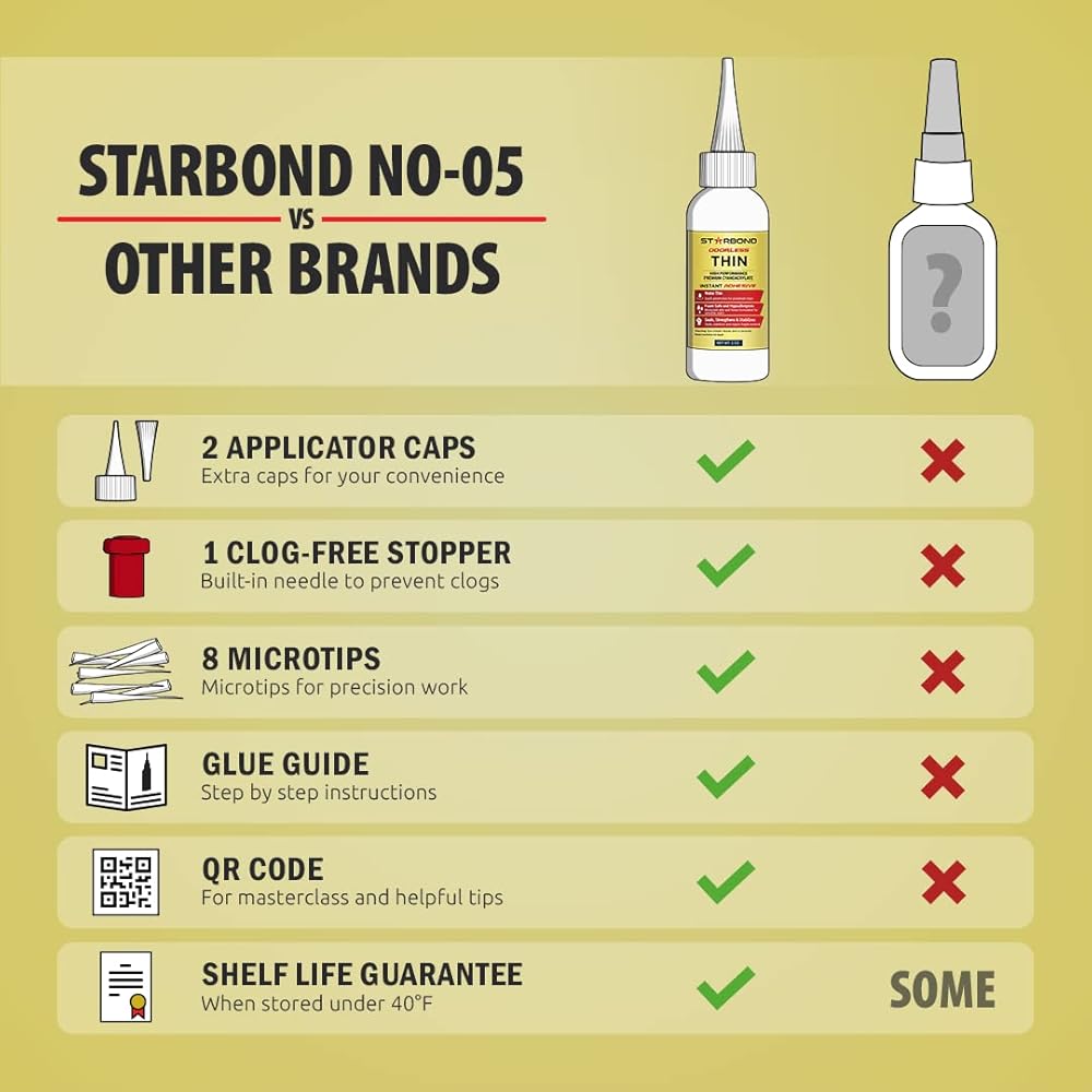 ✅ LONG LASTING SUPERIOR SHELF LIFE: Starbond CA glues have a shelf life of several years in the cold. Store the bottle under 40°F before AND after use to qualify for our 30 Month Shelf Life Warranty. If the glue doesn't last, contact us and we'll replace it free of charge or provide a 100% refund!