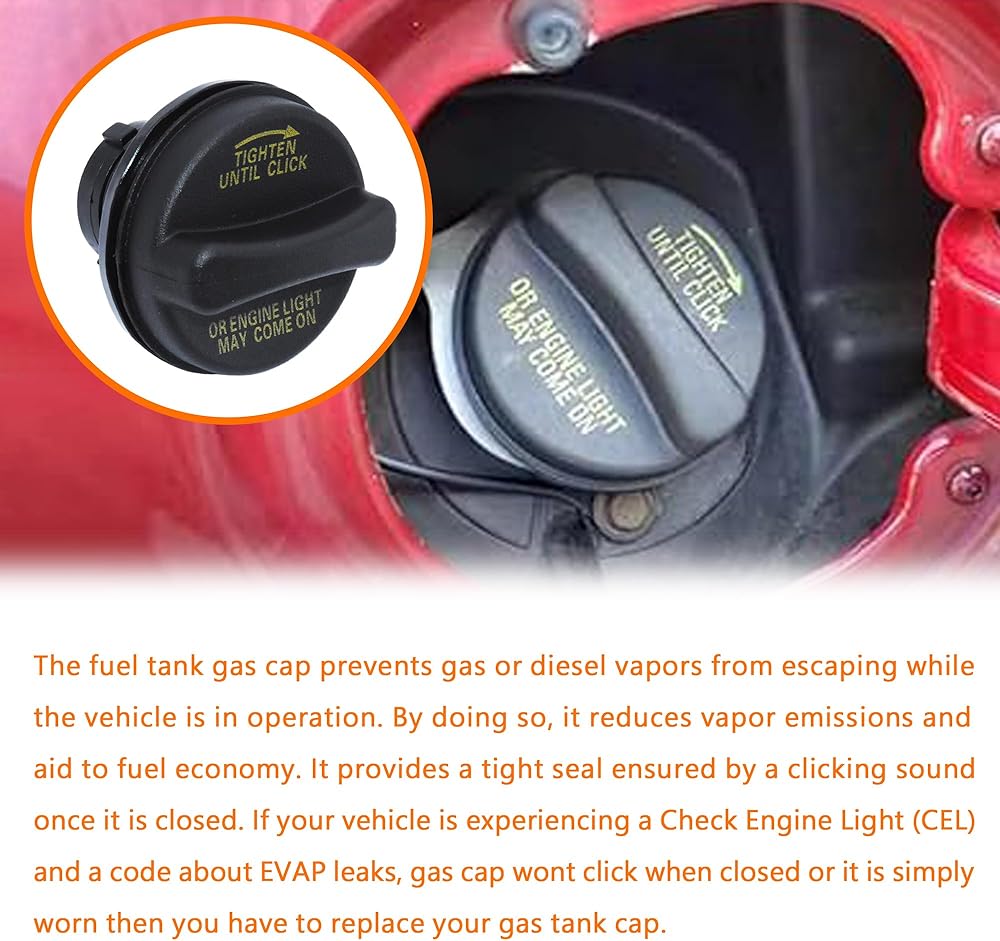 ▶FUNCTION◀-The fuel caps provides a tight seal to keep your vehicle's fuel tank closed, safety your vehicle's occupants, fuel economy and reduce vapor emissions. An old, loose gas cap, cracked or otherwise faulty gas cap may causes your check engine light CEL turns on. If your check engine light comes on or if you smell of gasoline or diesel vapors around or near the fuel filler cap and your car is not smoking or making a unusual noise, please take a minute to check the gas cap.