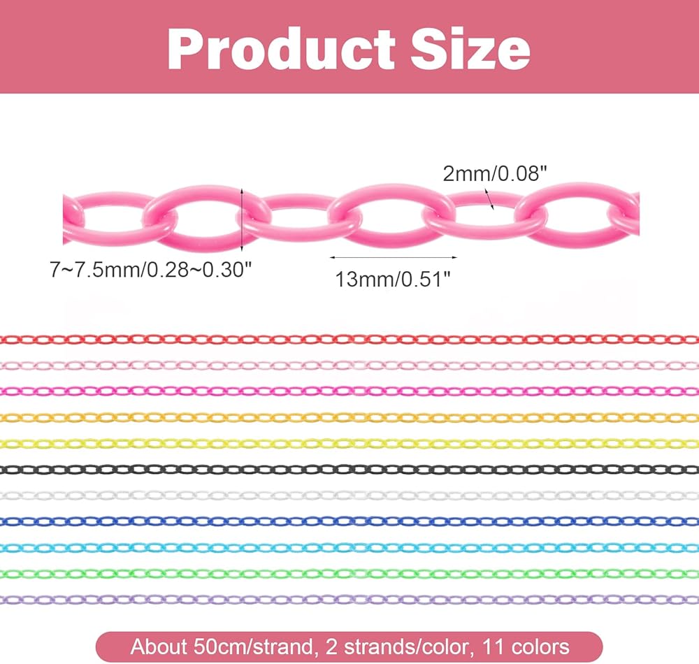 Package Contents: You will receive 22plastic chains in 11 colors, 2 in each. The diverse color options cater to diverse needs and creative inspirations, allowing you to find the perfect shade for every occasion, whether it's for everyday decoration or handmade creations.