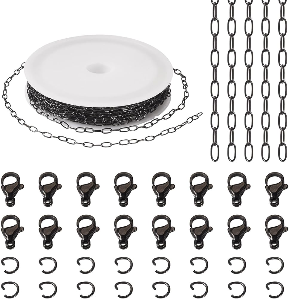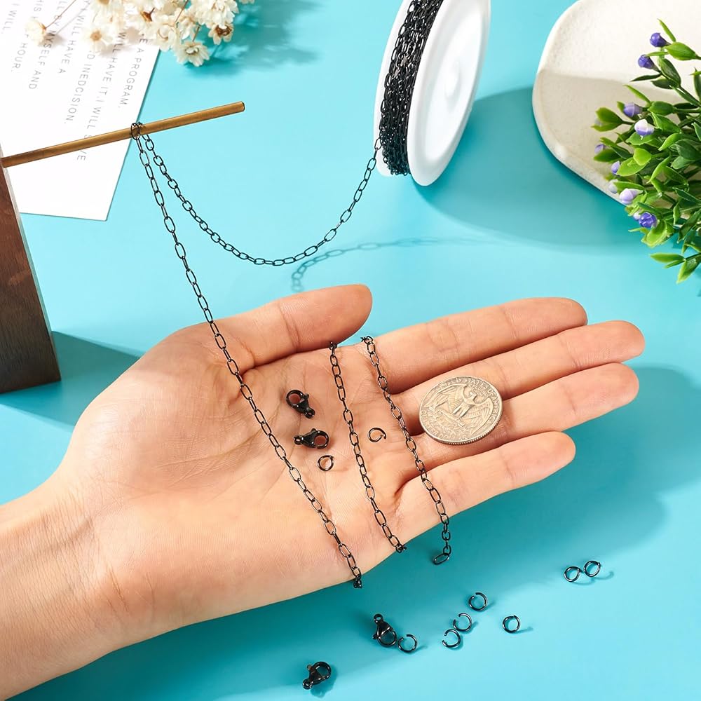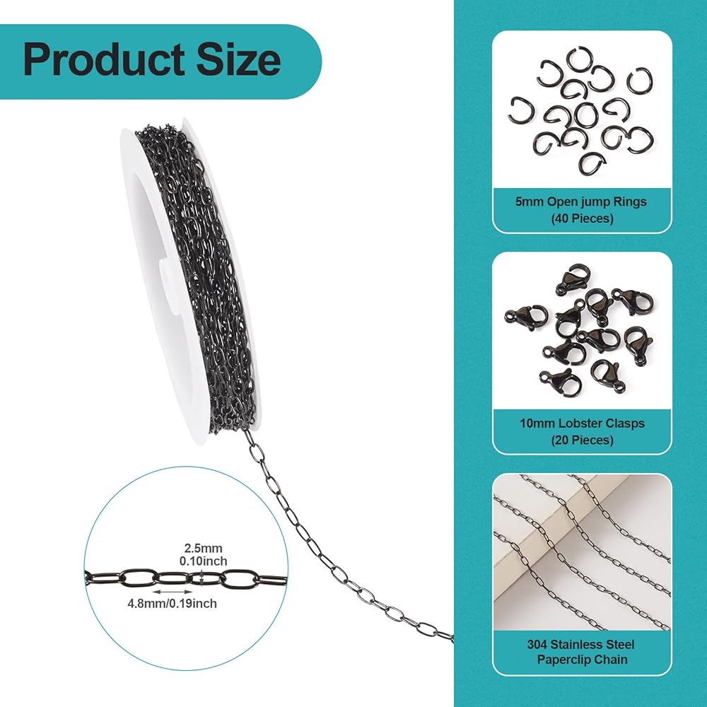 Convenient Set: Create beautiful bracelets and necklaces with ease using our complete jewelry making kit, which includes a 16.4ft/5m roll of paperclip chain, 40 jump rings, and 20 lobster clasps.