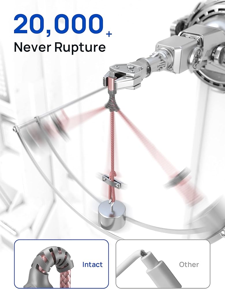 【متانة معززة】: يضيف الكابل المضفر من النايلون الفاخر متانة إضافية وخالية من التشابك. تصميم خاص لتخفيف الضغط، يمكن أن يتحمل أكثر من 20000 اختبار انحناء.