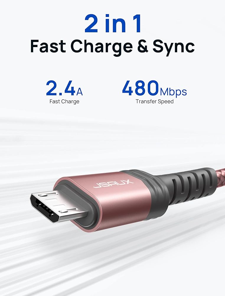 【شحن ومزامنة عالية السرعة】: سرعة نقل كابل Micro USB تصل إلى 480 ميجابت في الثانية، شحن 2.4 أمبير. نقل البيانات وشحن عالي السرعة 2 في 1.