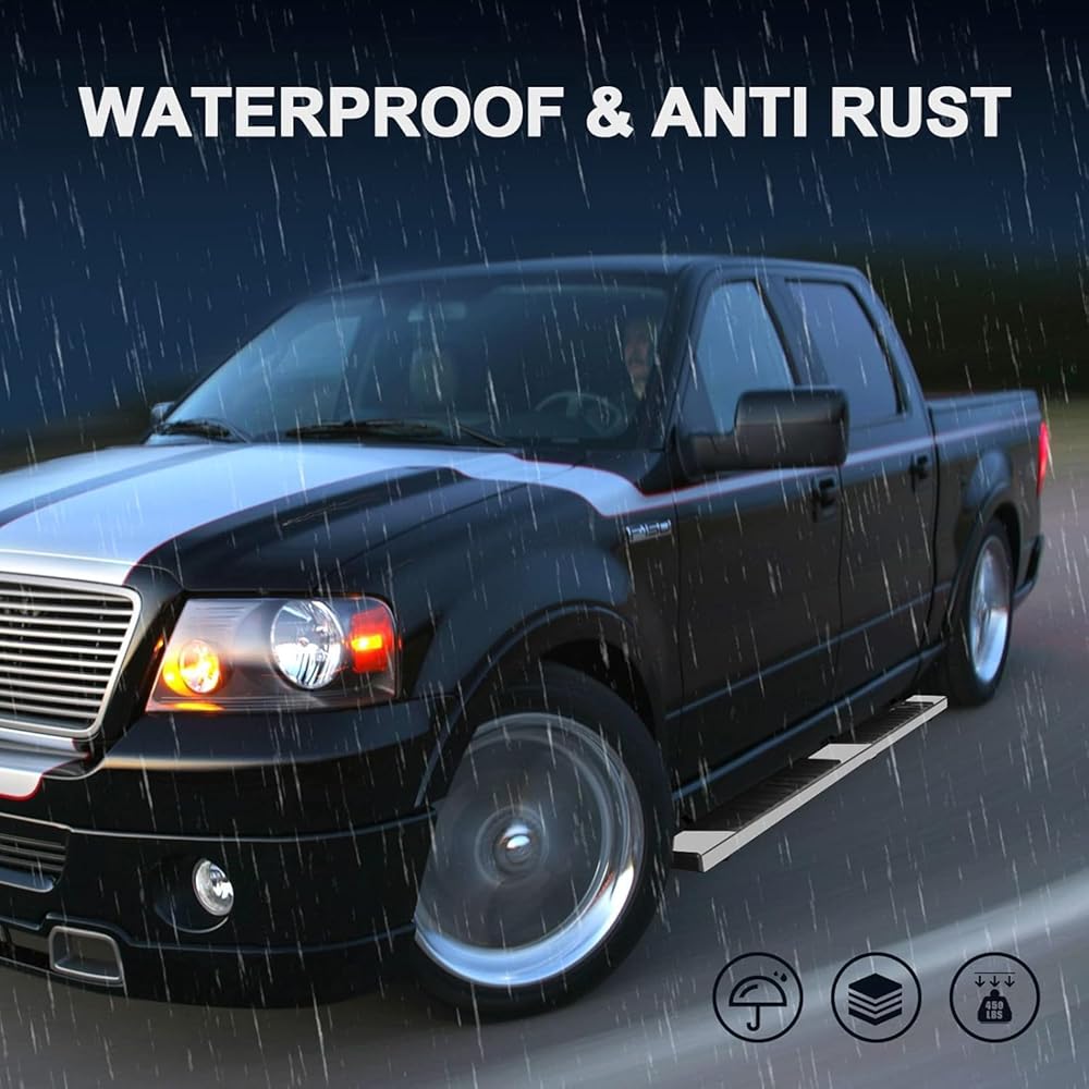 المادة: ألواح الجري Climwa Tundra مصنوعة من الفولاذ الكربوني عالي التحمل وخطوات بلاستيكية مضادة للانزلاق. خطوة بعرض 15.24 سم، توفر قاعدة آمنة يمكنك من خلالها الصعود إلى شاحنتك.
